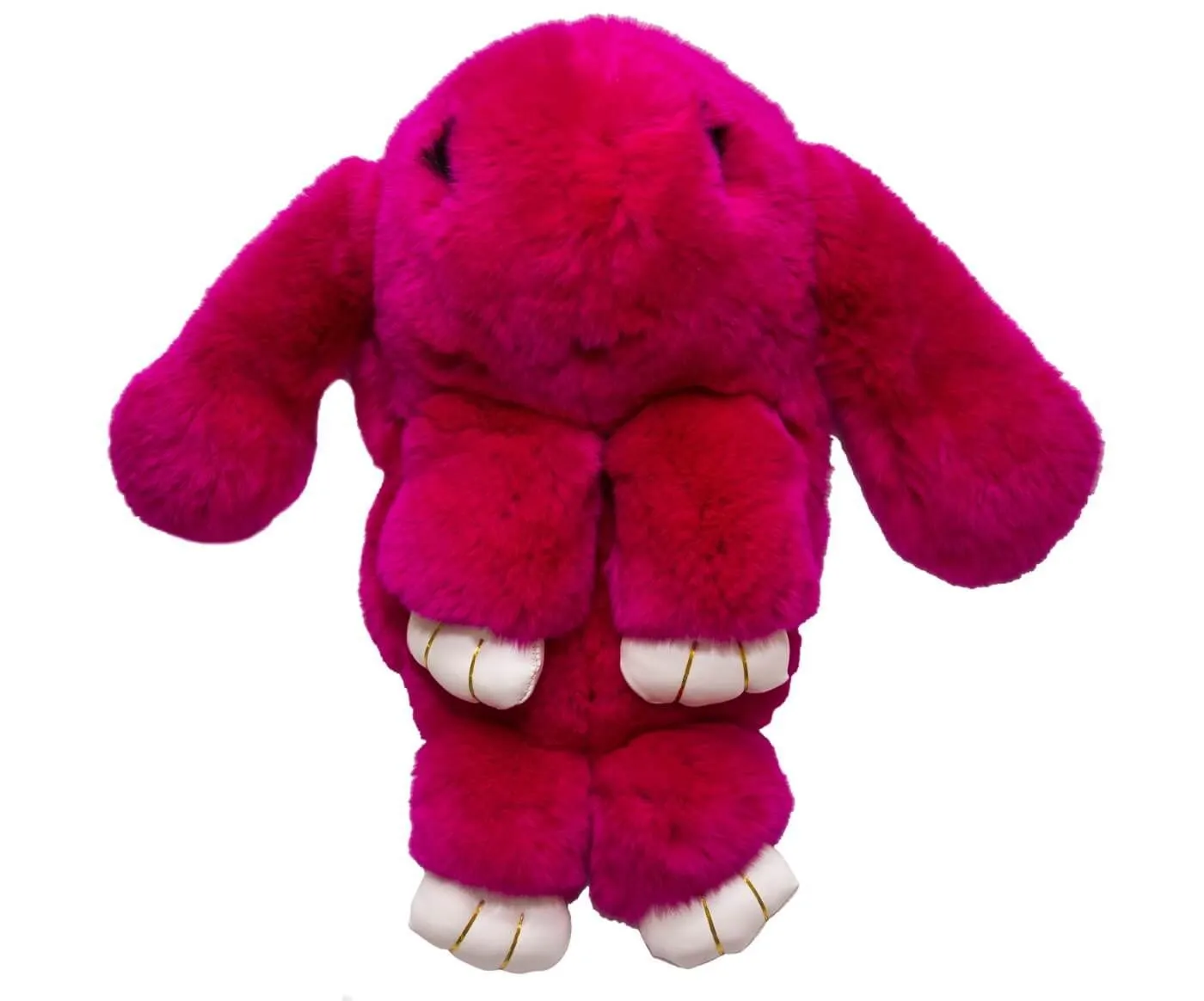 Небольшой рюкзачок в виде очаровательного розового кролика обязательно придется Вам по душе! Невероятно мягкий и милый он может служить не только в качестве довольно вместительного рюкзака, но и в качестве забавной мягкой игрушки. У кролика есть одно отделение на молнии, которое располагается сзади. Лямка сделана из цепочки золотистого цвета, при необходимости ее можно отстегнуть. В таком рюкзачке Вы всегда сможете с удобством переносить все свои самые ценные вещи и при этом выглядеть стильно.