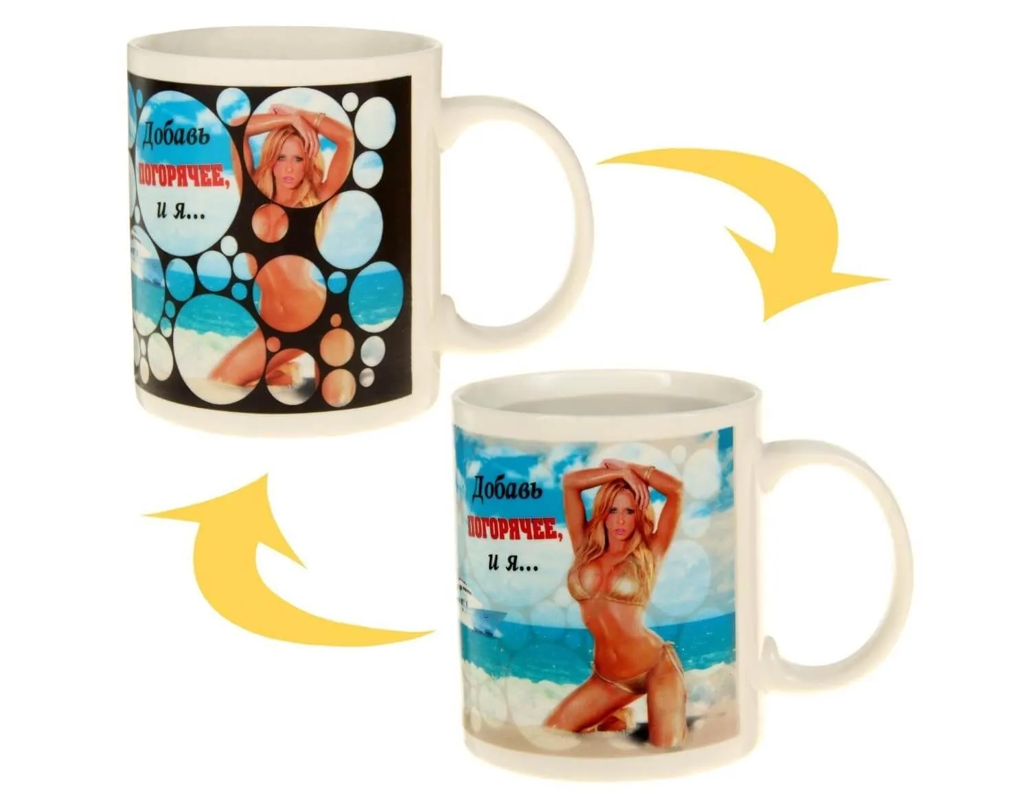 Кружка-хамелеон "Добавь погорячее" от компании Сима Ленд не зря называется хамелеоном, ведь она в самом деле способна менять свой цвет! Весь секрет заключается в особых термочувствительных красках, которые становятся прозрачными при нагревании. Поэтому как только Вы нальете в кружку свой любимый горячий напиток, она сразу же начнет менять свой рисунок.