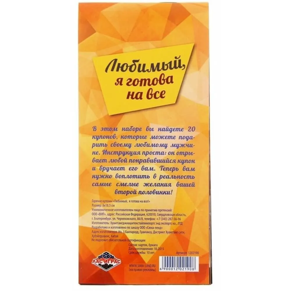 —Горячие купоны Сима Ленд Любимый я готова на все, 20 шт