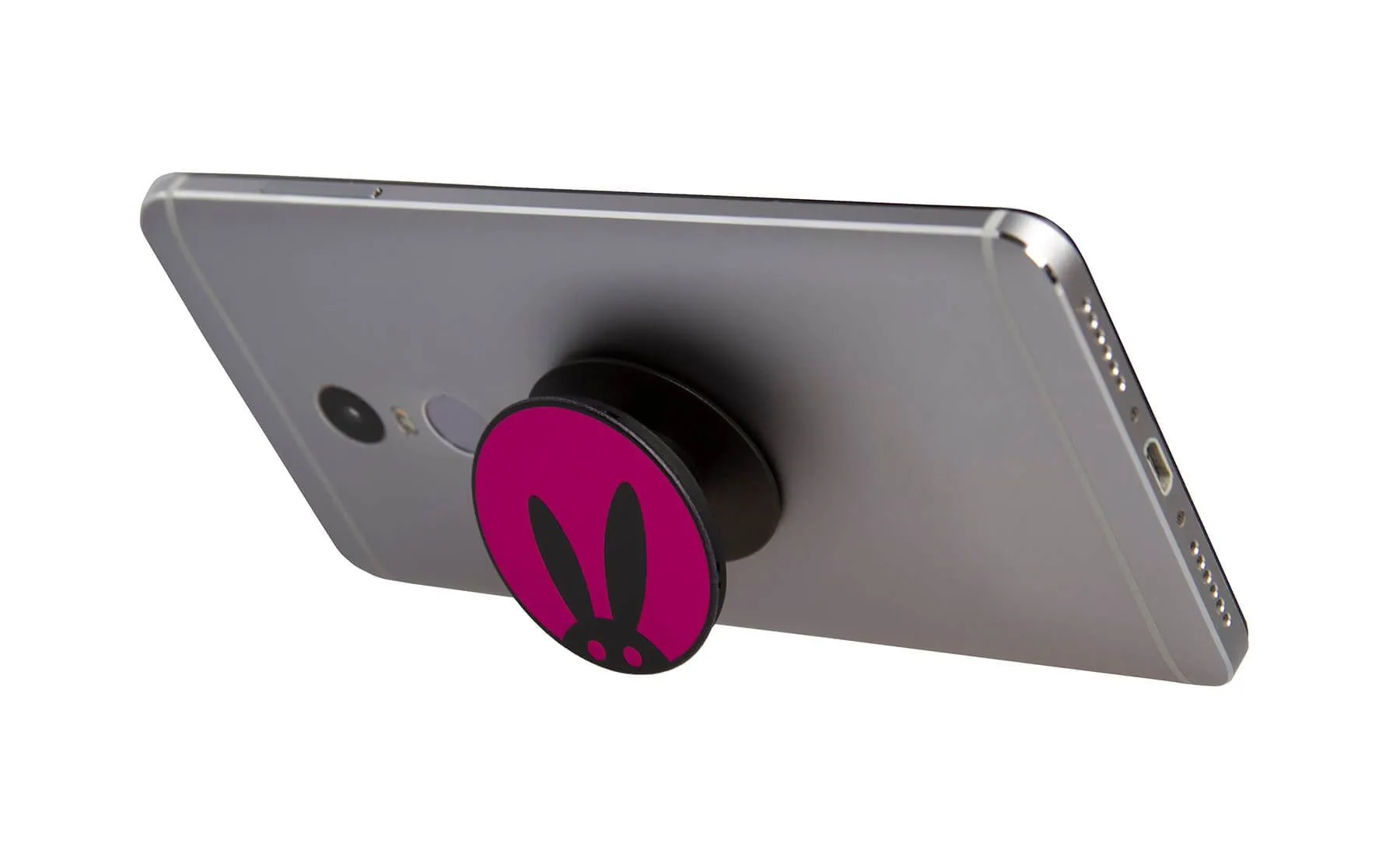 Держатель для смартфонов с логотипом Розового Кролика позволит Вам сделать свое устройство более функциональным. С держателем телефон можно будет расположить под наклоном для большего удобства во время просмотра видео или серфинга в интернете. Вокруг него очень просто зафиксировать наушники, чтобы они не спутывались и не мешались. Делать селфи и видео с ним также будет проще, ведь больше не придется целиком обхватывать корпус рукой. Кроме того, попсокет с кроликом - это еще и стильный аксессуар, который украсит собой Ваш девайс.