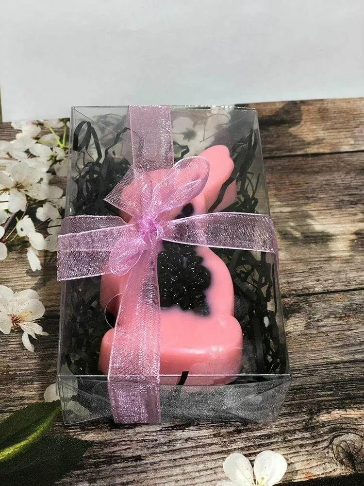 Мыло ручной работы в виде очаровательного розового кролика с цветами станет идеальным подарком для членов Вашей семьи, второй половинки или друзей! Оригинальный дизайн сразу привлекает к себе внимание, яркие цвета радуют глаз, а восхитительный аромат Bubble gum пленяет своей сладостью. Мыло очень хорошо пенится и будет нежно очищать кожу, не пересушивая ее, а даря только приятные ощущения. Оно упаковано в подарочную коробочку и перевязано красивой лентой.
