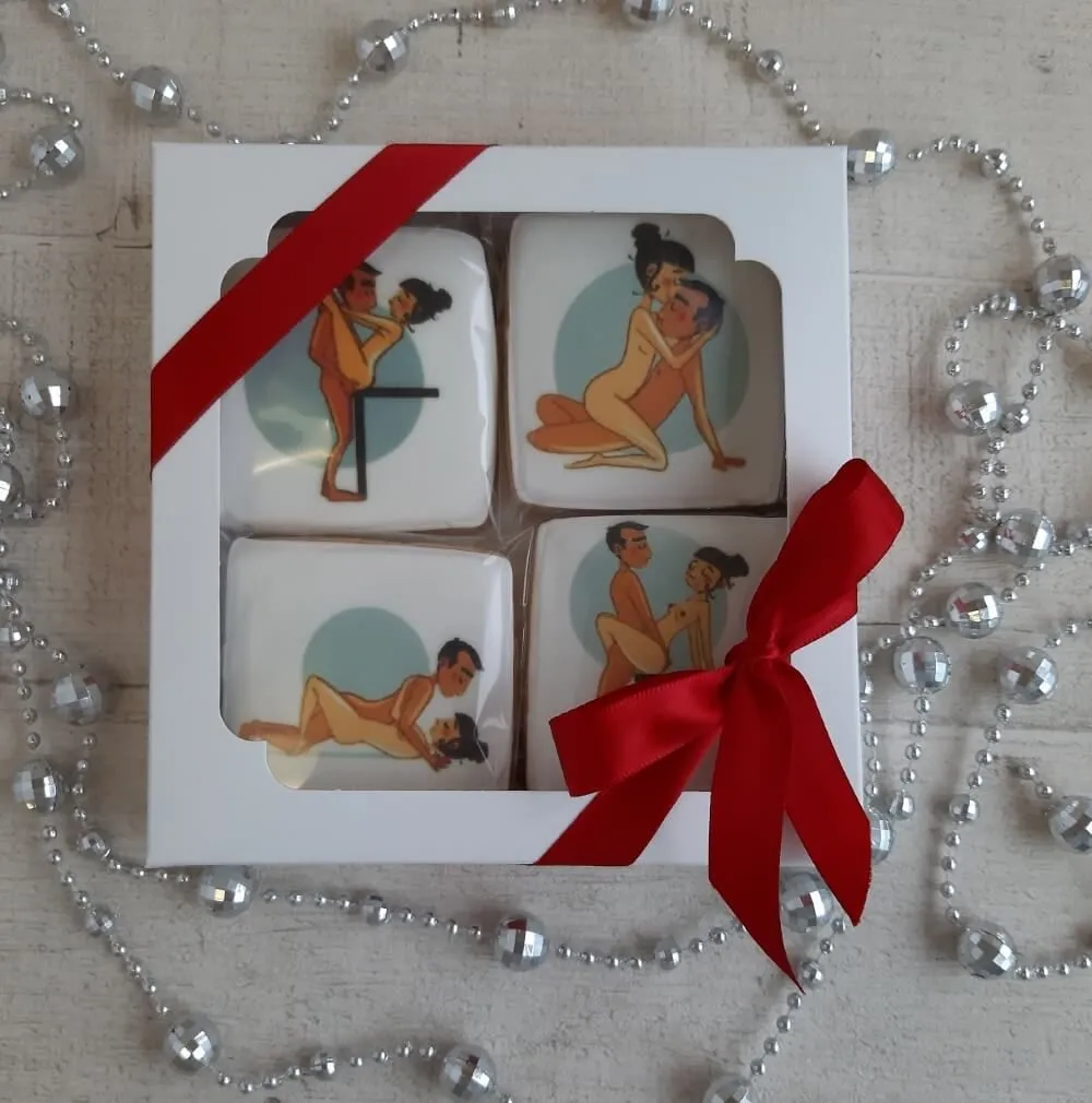 Оригинальное печенье от компании "Сладоленд" порадует любителей сладкого и станет прекрасным подарком на Новый Год или другой праздник. Набор "Камасутра", состоящий из 4 печений, на каждом из которых изображена влюбленная парочка в пикантной позе, намекнет на приятное продолжение вечера в компании любимого человека.
