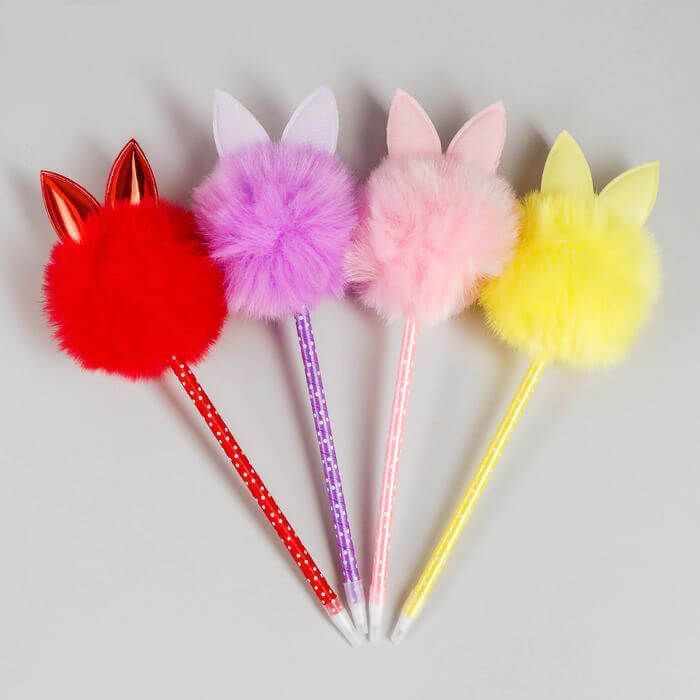 Шариковая ручка в необычном воплощении! Корпус украшен лентой по всей длине и Зайка-пушистик на конце. Практичный, яркий, всегда нужный предмет, которым мы пользуемся каждый день. Но она умеет не только писать, но и поднимать настроение всем вокруг. Ручка-пушистик придётся по вкусу маленьким деткам – больше энтузиазма чтоб сесть за уроки. Для взрослых станет оригинальным украшением рабочего стола и приятным напоминанием о человеке, который преподнёс её.