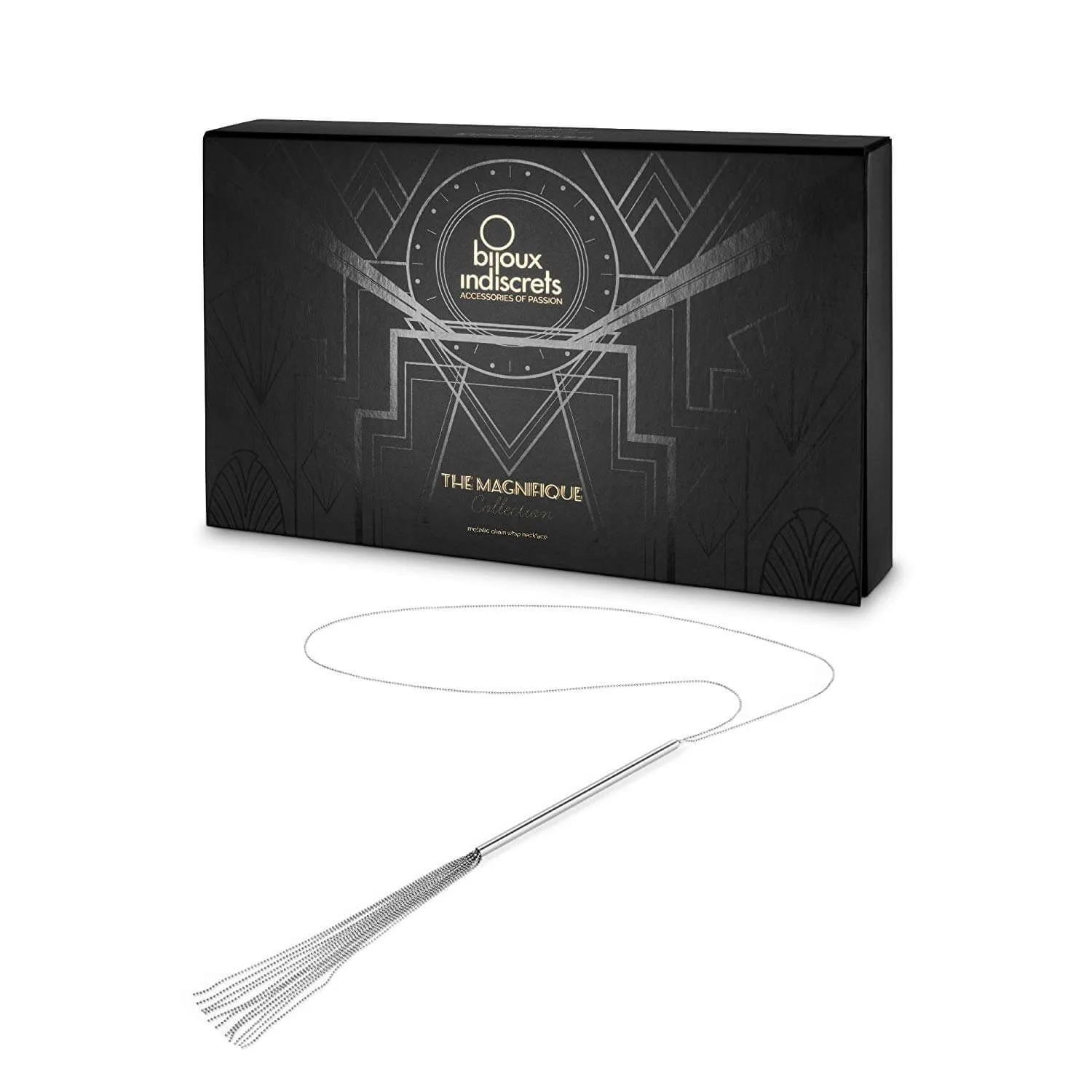 Элегантное ожерелье-кнут из серии Magnifique от бренда Bijoux Indiscrets - это необычный аксессуар, который можно использовать и как украшение, и как плетку. Дизайн аксессуаров из серии Magnifique был навеян танцовщицами кабаре в Нью-Йорке двадцатых годов, чья чувственность и соблазнительность присутствовали в каждой детали их образа. При выходе в свет ожерелье подчеркнет Вашу элегантность и уникальный стиль, а в приватной обстановке с партнером оно превратится в оружие соблазнения. При желании Вы сможете снять ожерелье и превратить его в кнут, при помощи которого будете нежно ласкать или наказывать возлюбленного. Контраст между холодной металлической цепочкой и разгоряченной кожей приятно удивит Вашего партнера.