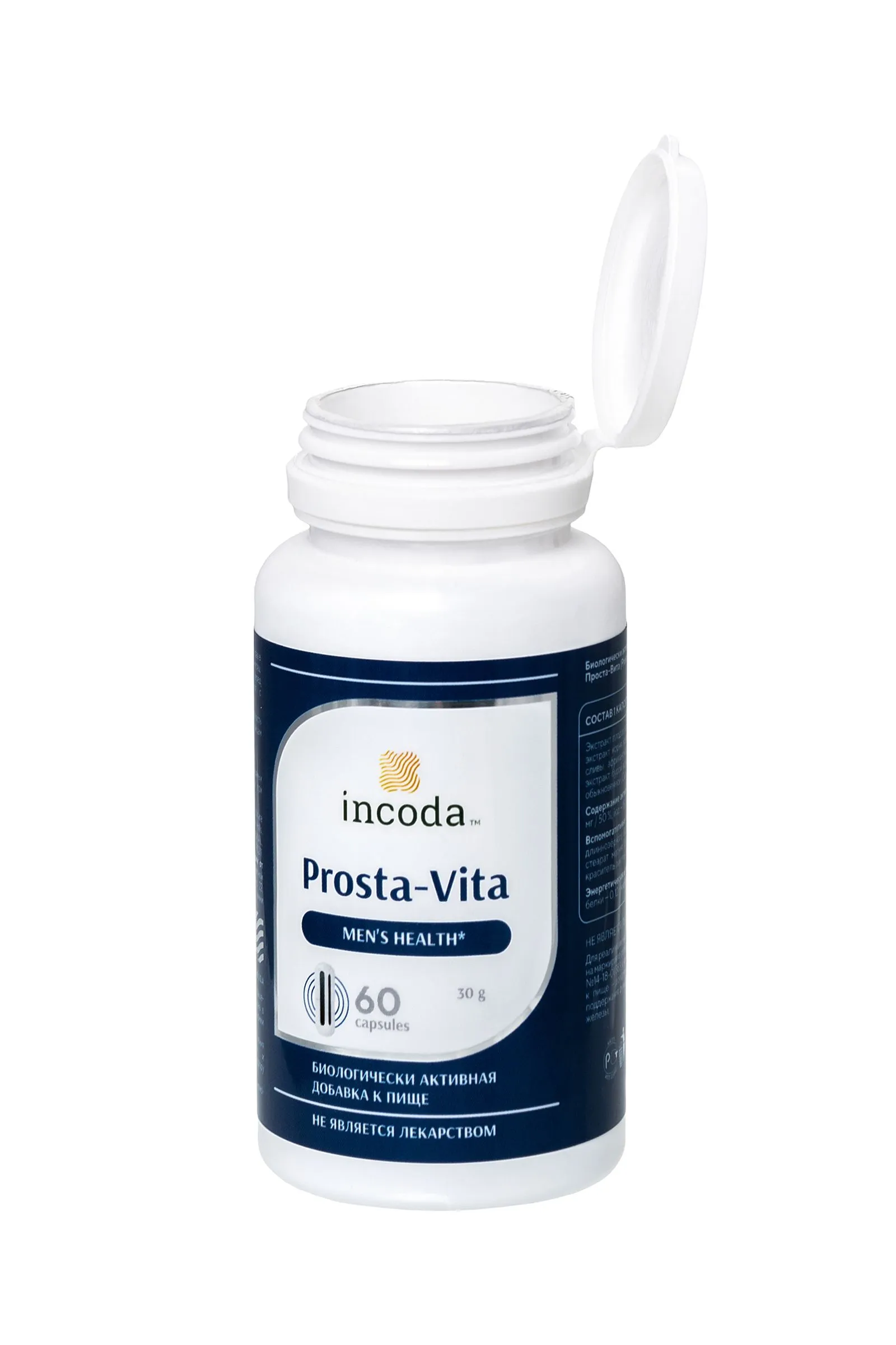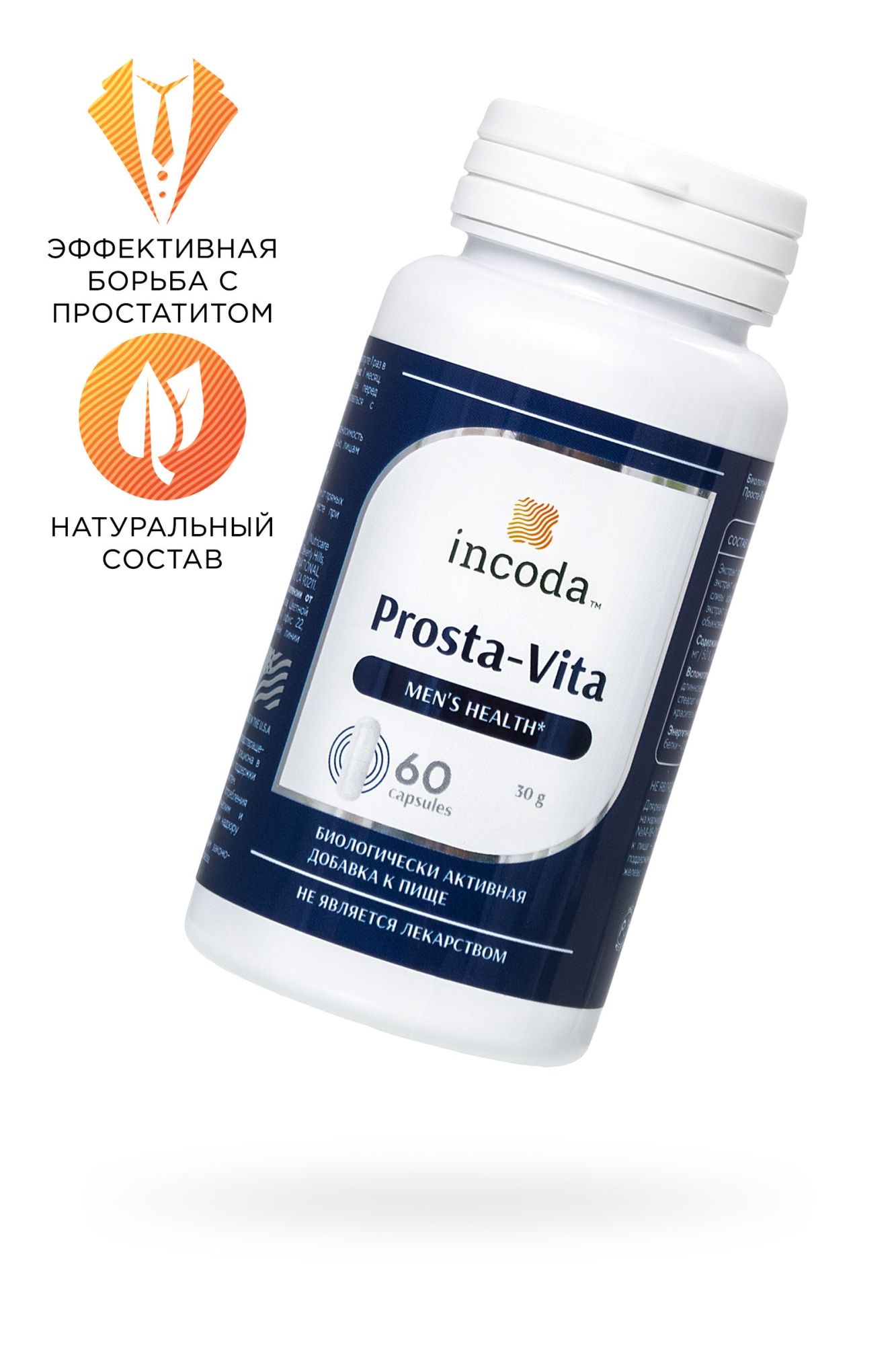 Биологически активная добавка для мужского здоровья Проста-Вита от компании Incoda – природное средство с натуральным составом. Проста-Вита успешно борется с простатитом, обладает противовоспалительным действием, улучшает работу предстательной железы и кровоснабжение в органах половой системы, повышает эректильные функции, снижает риск проявления хронического простатита, ДГПЖ. В составе капсул Проста-Вита экстракт плодов пальмы ползучей, экстракт корня крапивы, экстракт корня сливы африканской, экстракт бурой водоросли, семена тыквы, цинк, вспомогательные компоненты. Комплексное действие капсул Проста-Вита уменьшает отек и боль в предстательной железе, нормализует работу мочеполовой системы и оказывает общее укрепляющее действие на мужское здоровье. Курс Проста-Вита возвращает к нормальному образу жизни без частых позывов в туалет, отказа от любимых напитков, семейных путешествий. Показания к применению: Болезни мужской репродуктивной системы (аденома простаты, простатит, гипертрофия предстательной железы, онкозаболевания простаты, импотенция) Заболевания мочевыделительной системы (уретрит, цистит, почечнокаменная болезнь, задержка мочеиспускания) Иммунная система (повышенная частота простудных и вирусных заболеваний, повышенный риск новообразований) Сердечно-сосудистая система (артериальная гипертония, атеросклероз, ишемическая болезнь сердца, риск инфаркта миокарда, дистрофия миокарда) Болезни опорно-двигательной системы (остеохондроз, ревматизм, подагра, остеоартрит) Патология кожи и волос (сухость, шелушение, преждевременное увядание, дерматит, экзема, воспалительные заболевания, выпадение и слабый рост, дистрофия ногтей) Болезни желудочно-кишечного тракта и печени (хронические запоры, холецистит, дизентерия, дискинезия желчных путей, геморрой) А также сахарный диабет, ожирение, кровотечения любого генеза, глистные инвазии, интоксикации, отравления тяжелыми металлами Противопоказания: индивидуальная реакция организма на компоненты препарата. Рекомендации по применению: принимать по 1 капсуле 1 раз в день во время еды. Средство не вызывает привыкания, не имеет выраженных побочных эффектов. Подходит для применения курсами. О продолжительности и определении эффективной схемы приема обязательно проконсультируйтесь с лечащим врачом. Форма выпуска: капсулы по 500 мг. В упаковке 60 шт. БАД, НЕ ЯВЛЯЕТСЯ ЛЕКАРСТВЕННЫМ СРЕДСТВОМ