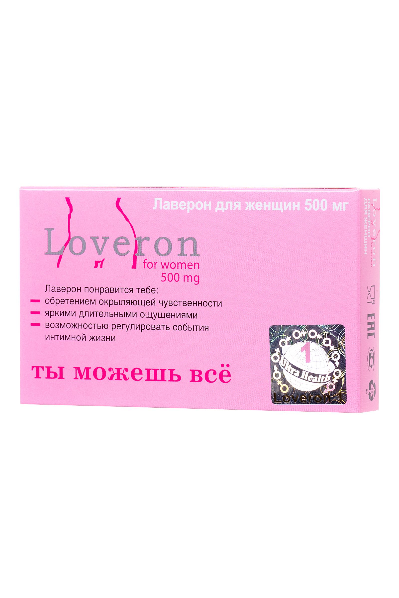 Прослыть скучной, аморфной или, не дай Бог, фригидной, не хочется ни одной женщине. И не имеет значения при этом, давно она в отношениях, или этот партнёр новый. Возбуждающие таблетки “Лаверон” для женщин сделают всё, чтобы закрепить за женщиной только положительную репутацию — “огонь в постели”. Натуральный стимулятор сексуальной активности для женщин. Приём возбуждающей таблетки “Лаверон” за час до секса увеличивает сексуальную восприимчивость и активность, а также усиливает остроту оргазма. Помимо того, в состав препарата входят растительные компоненты - наблюдается положительное воздействие на нервную систему. “Лаверон” для женщин применяется для коррекции сексуальных нарушений, быстро повышает либидо и помогает преодолеть аноргазмию, усиливает чувствительность. Рекомендации по применению: взрослым женщинам по 2 таблетки в день во время еды. Продолжительность приема 4-6 недель. При необходимости курс можно повторить. Продолжительность действия от 6 до 10 часов. Противопоказания: индивидуальная непереносимость компонентов, беременность, кормление грудью. Срок годности: 2,5 года. Форма выпуска: в упаковке 1 таблетка 500 мг БАД, НЕ ЯВЛЯЕТСЯ ЛЕКАРСТВОМ.