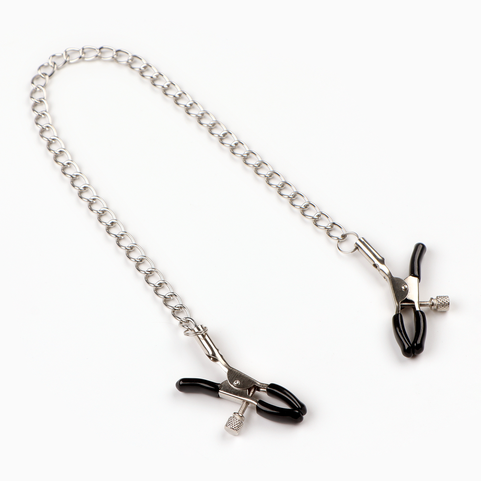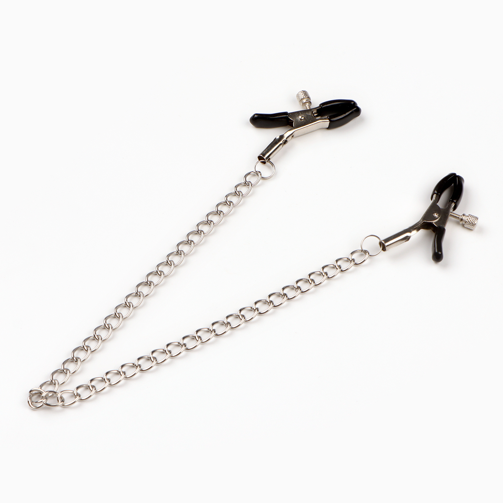 Зажимы для сосков и клитора изготовлены из алюминия, изделие имеет пластиковые наконечники. Длинная цепь позволяет одновременно использовать зажимы для сосков и клитора. Соединяющая цепочка является не только красивым дополнением, но и позволяет оттягивать и вращать соски для получения дополнительных приятных ощущений. Можно использовать как самостоятельный стимулятор, а также как дополнение к прелюдии и сексу.