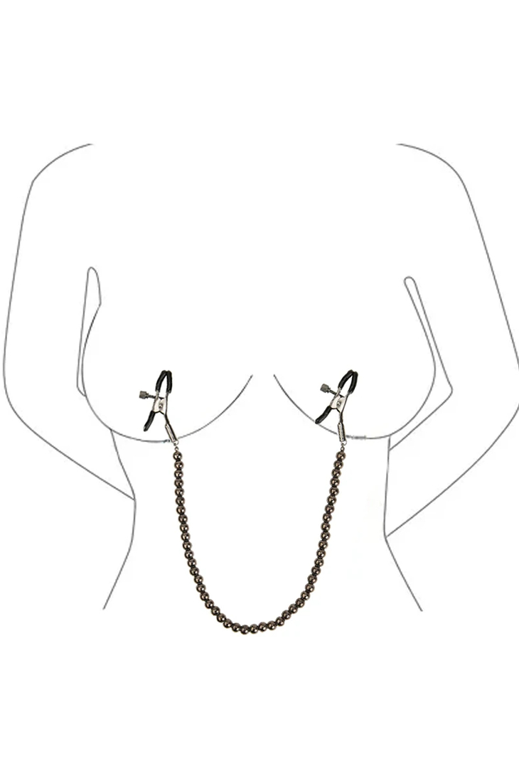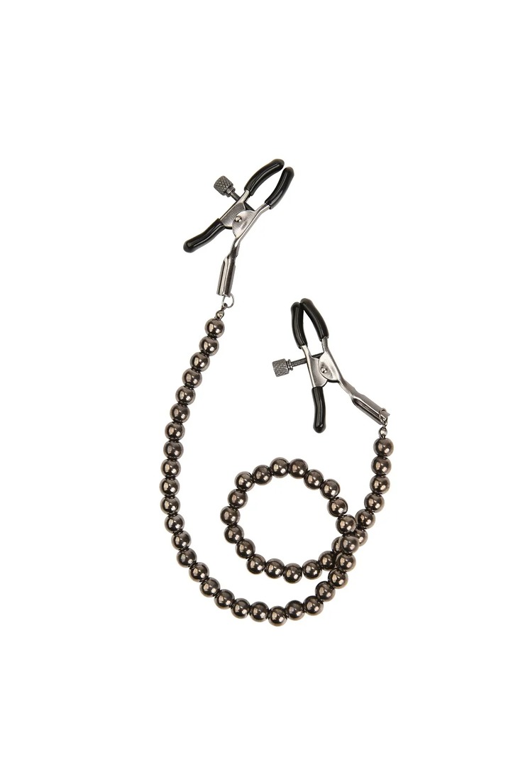 —Черные зажимы на соски с цепочкой из бусин