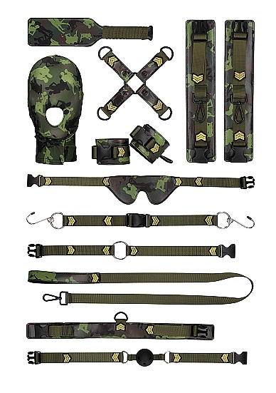 Этот невероятный комплект для БДСМ из армейского камуфляжа стоит добавить в любую БДСМ-коллекцию. Заставьте своего саба повиноваться с помощью этого сказочно прекрасного, модного и функционального набора принадлежностей. В комплект входят наручники и кандалы, крестовина для фиксации рук и ног, ошейник с поводком, кляп с кольцевым уплотнением, кляп с крюком, позволяющий дышать шаровой кляп, повязка на глаза, маска с отверстием для рта и паддл. Эта пикантная коллекция содержит практически все, что вам нужно для получения полных БДСМ-впечатлений. Армейский комплект Ouch с гарантией обеспечит вам час за часом невероятными ощущениями, будь то бондаж, подчинение, доминирование, ограничение всего тела, удовольствие или боль - вы найдете все это в этой одной коробке. Таким образом, независимо от того, начинаете вы свое путешествие в мир БДСМ или являетесь знатоком фетишей, комплект для бондажа Ouch будет любимым дополнением к вашей коллекции - как большой, так и малой.