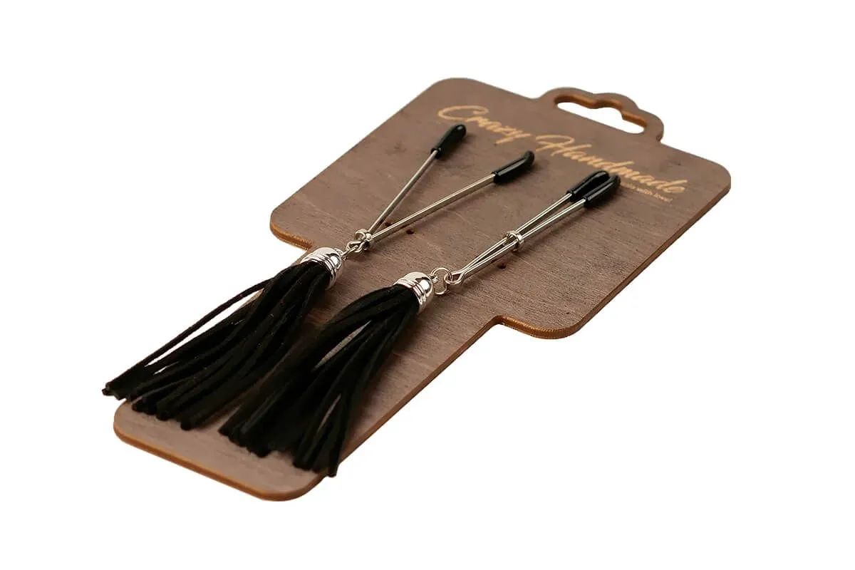 Зажимы-вилки на соски от бренда Pink Rabbit будут не только красивым интимным украшением, но и смогут сделать соски более чувствительными. Зажимы украшены красивыми кисточками черного цвета из искусственной замши, которые будут соблазнительно и маняще колыхаться при каждом Вашем движении. Передвигая на зажимах колечко, Вы сможете отрегулировать необходимую степень сжатия. После использования зажимов соски станут гораздо чувствительнее и каждое прикосновение к ним будет более ощутимым. Кончики зажимов покрыты мягким материалом, поэтому они не травмируют нежную кожу.