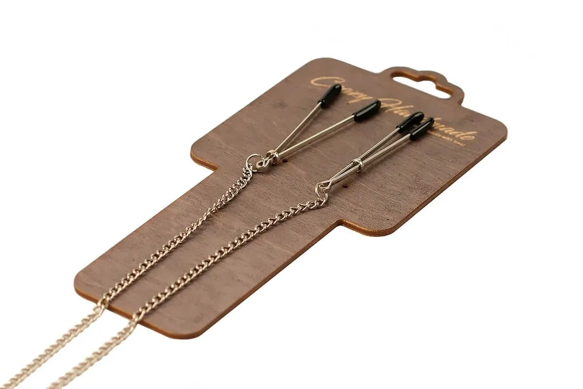 Зажимы-вилки на соски от бренда Pink Rabbit будут не только красивым интимным украшением, но и смогут сделать соски более чувствительными. Зажимы соединены между собой металлической цепочкой длиной 20 см, за которую при желании можно потянуть, чтобы усилить давление на соски. Передвигая на зажимах колечко, Вы сможете отрегулировать необходимую степень сжатия. После использования зажимов соски станут гораздо чувствительнее и каждое прикосновение к ним будет более ощутимым. Кончики зажимов покрыты мягким материалом, благодаря чему они не будут травмировать кожу.