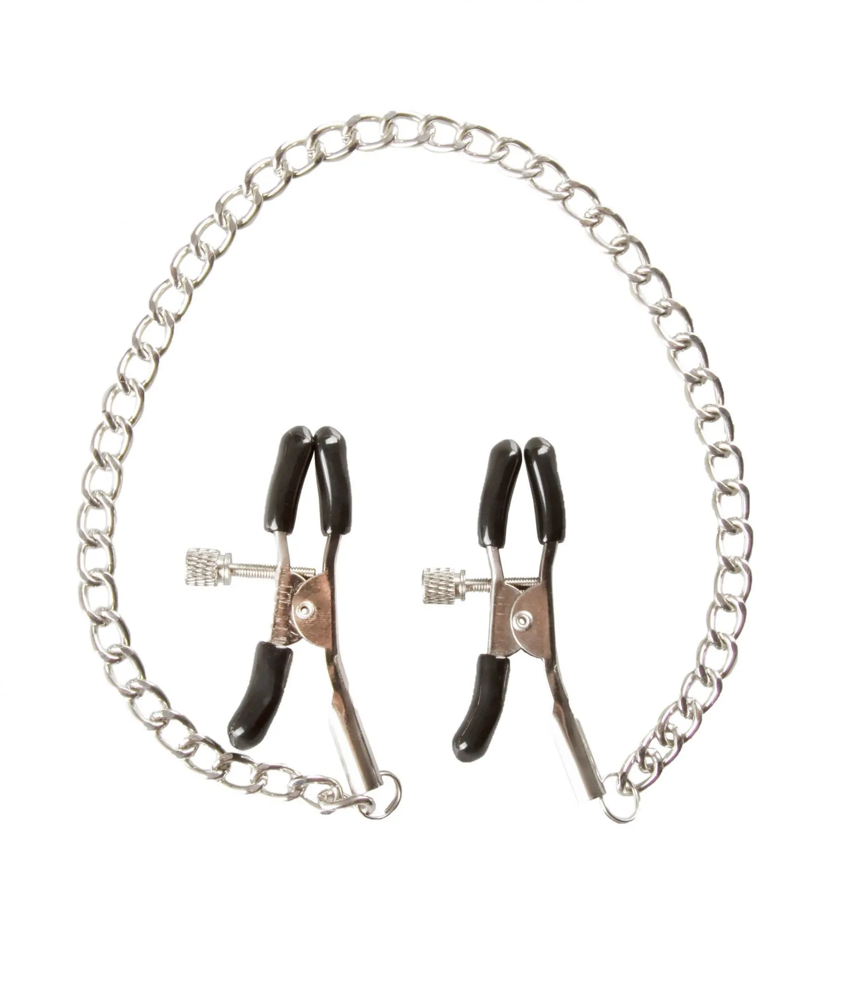 Зажимы для сосков - это аксессуар, который идеально подойдет тем, кто хочет разнообразить свои сексуальные игры, добавив в них элемент БДСМ. Данная модель соединяет два зажима цепью, которая будет слегка подергивать их под тяжестью своего веса.