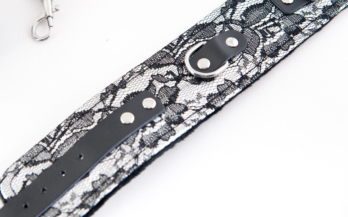 Этот кружевной бондажный комплект — потрясающий девайс для тех, кто желает превратить свою партнёршу в покорную королеву. Сцепка отлично фиксирует руки и ноги, полностью обездвиживая партнёршу. Но прелесть комплекта на этом не ограничивается — наручники и оковы легко снимаются! Это даёт возможность применять их и как отдельные атрибуты. Универсальность, изящность и надёжная фиксация — аксессуар с такими характеристиками без мощного сексуального наслаждения от бондажа не оставит.