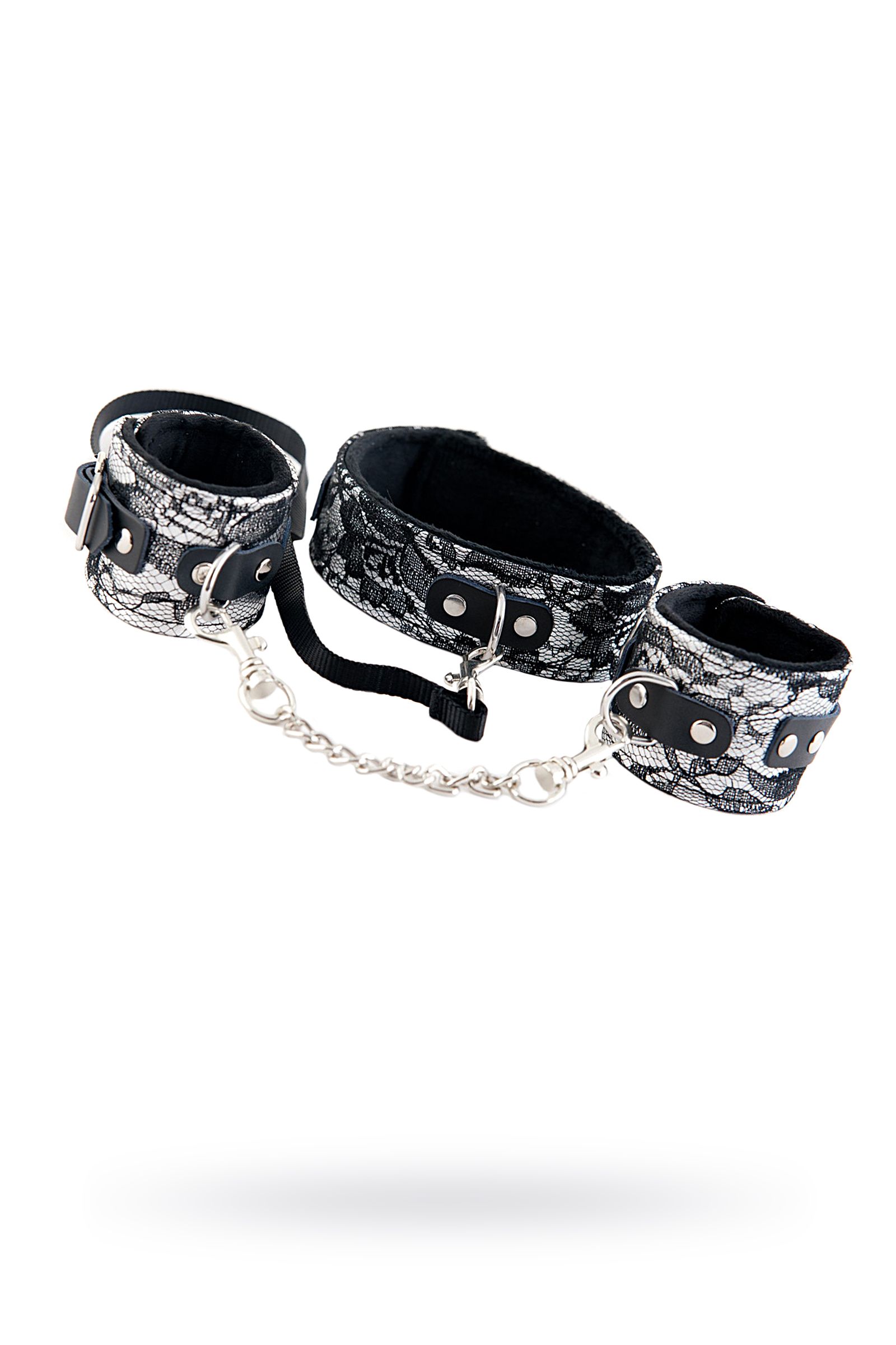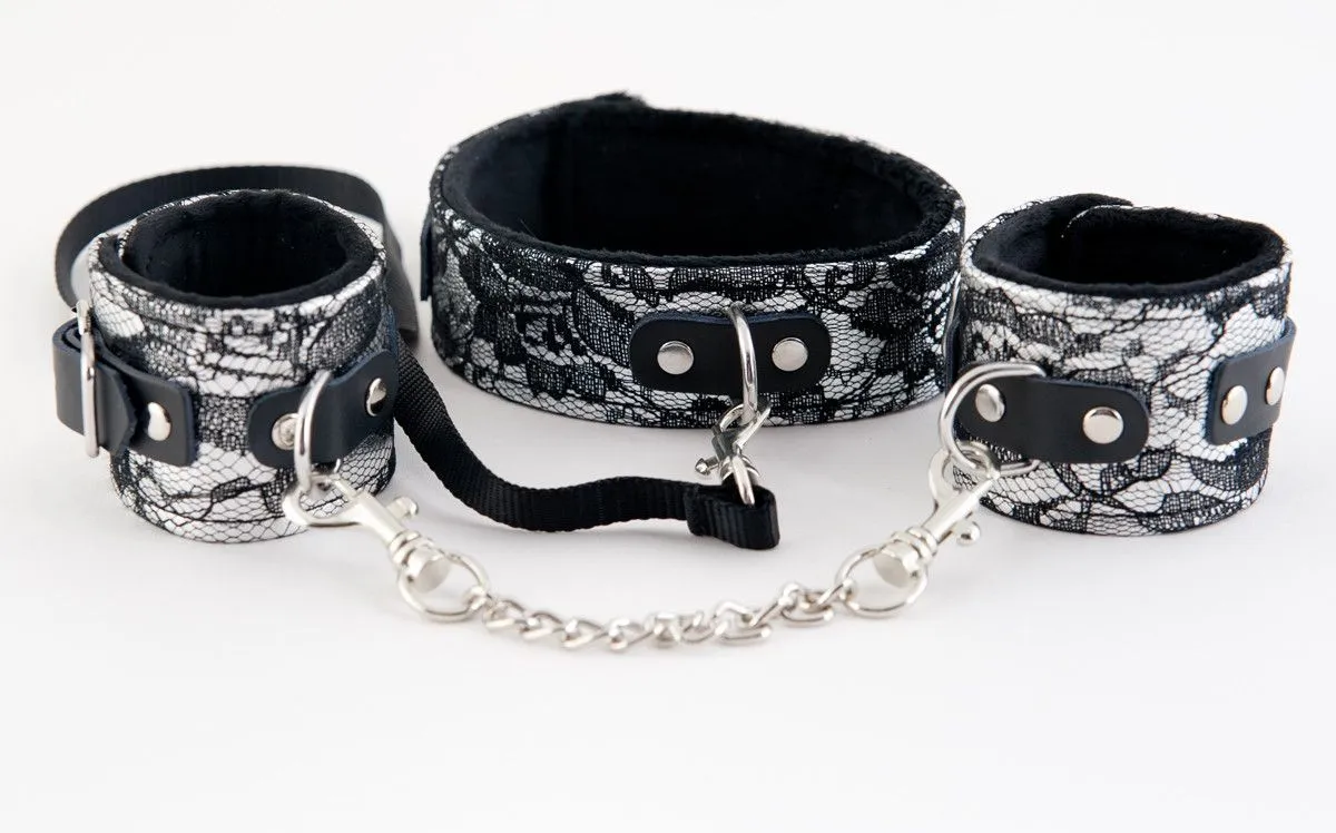 Этот кружевной набор является отличным инструментом для бондажа. Да, он не похож на привычные аксессуары для ограничения свободы движений. Он отличается особенной изысканностью. В таком комплекте любая женщина чувствует себя роскошно, даже находясь в покорном подчинении. В набор входят ошейник и наручники, которые можно использовать в качестве отдельных атрибутов. Не стоит ограничивать себя одним сценарием, пусть ролевые игры радуют своим разнообразием.