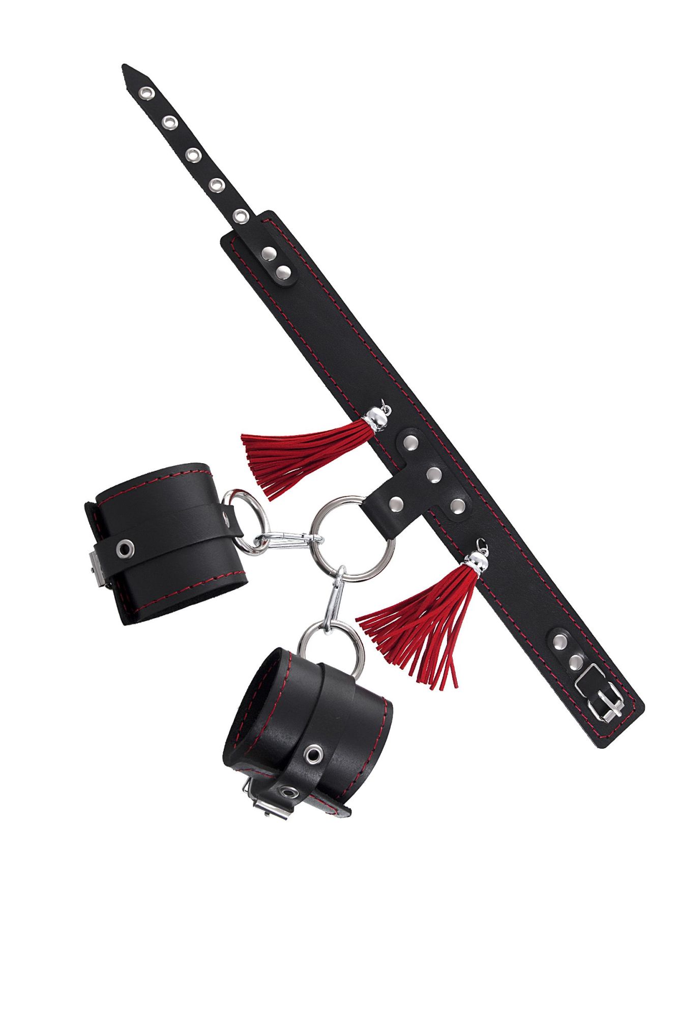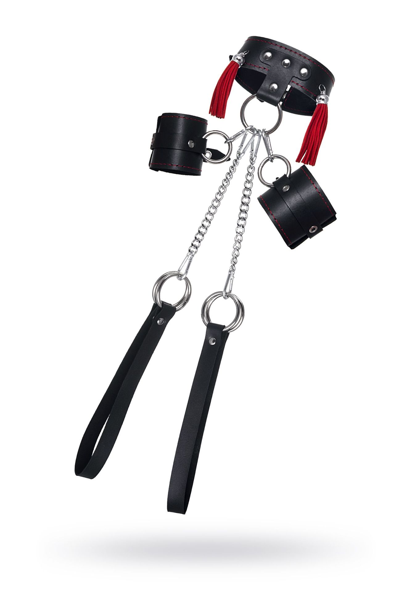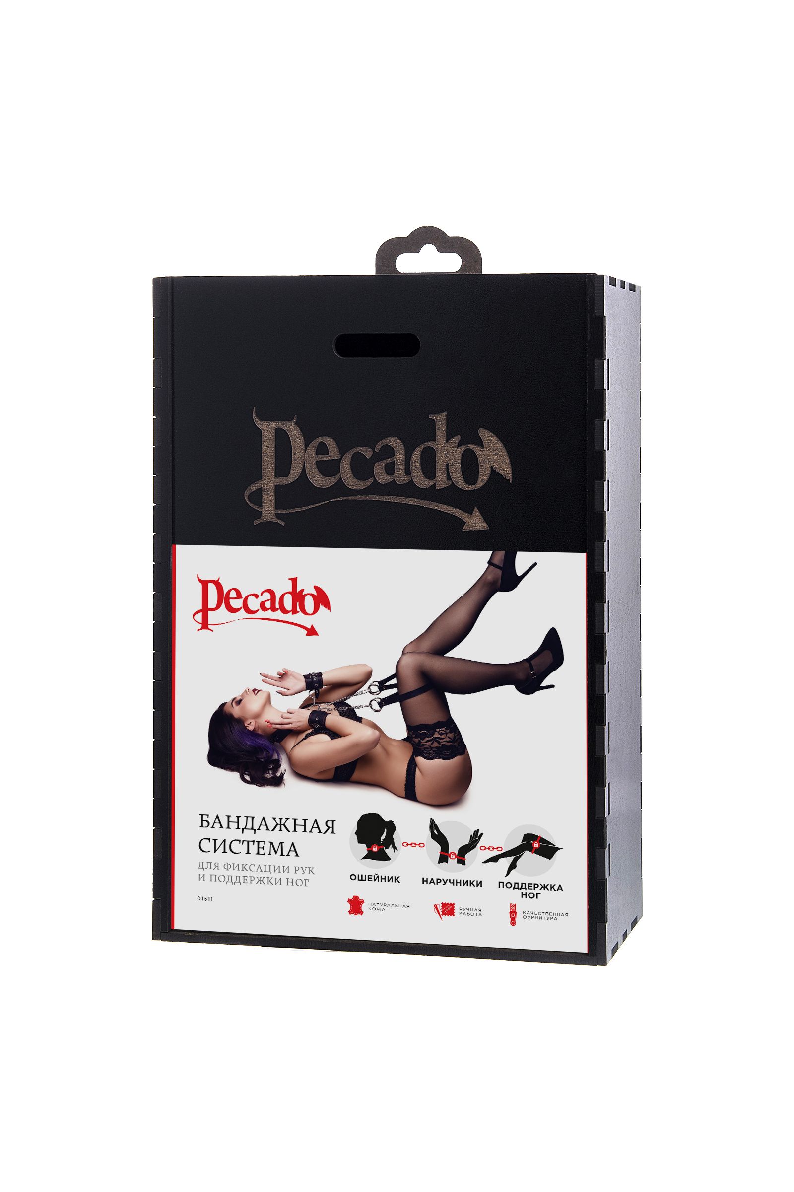 Готовы играть по-взрослому? С набором от Pecado BDSM воплощайте в жизнь смелые сексуальные фантазии, которые до этого момента были только мечтой. Хотите избавиться от искушения? Просто поддайтесь ему с Pecado BDSM! Бондажная система для фиксации рук и поддержки ног состоит из ошейника, пары фиксаторов для ног и пары наручников с контрастной строчкой красного цвета, всё это в фирменной деревянной коробке Pecado BDSM. Кожаный ошейник соединяется с наручниками с помощью кольца и металлических карабинов. Фиксаторы для ног крепятся к кольцу ошейника металлическими цепочками с карабином. Кольцо на ошейнике позволит присоединить и другие аксессуары при помощи карабинов и экспериментировать с позициями и ощущениями. С этим комплектом расширить возможности и способы фиксации проще простого! Варианты и комбинации ограничения свободы партнера зависят от вашей фантазии и желаний. Частичное обездвиживание и невозможность двигать руками дают вам полную власть над партнером – взрослые игры для взрослых. Pecado BDSM – российский бренд, использующий высококачественные материалы и надежную, проверенную временем фурнитуру. Все изделия изготавливаются вручную из натуральной кожи, безопасный и экологичный материал не оставляет повреждений на запястьях. Натуральная кожа, металлические крепления и ремешки дают уверенность в надежной фиксации, устойчивости к механическим нагрузкам и долговременном использовании. Ширина наручников - 6,5 см, длина наручников - 20 см