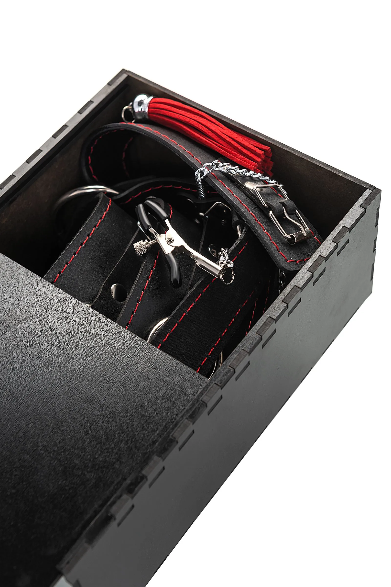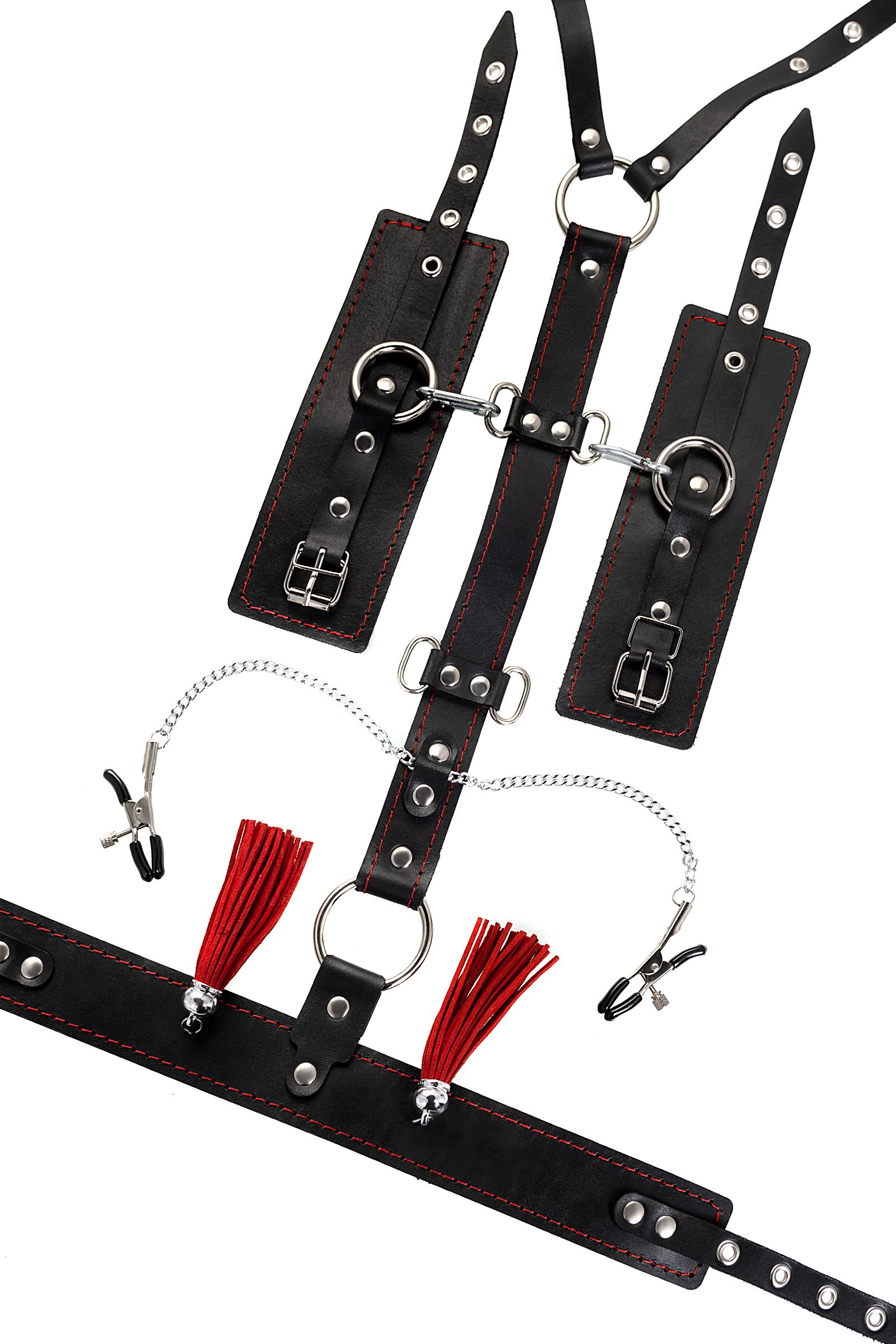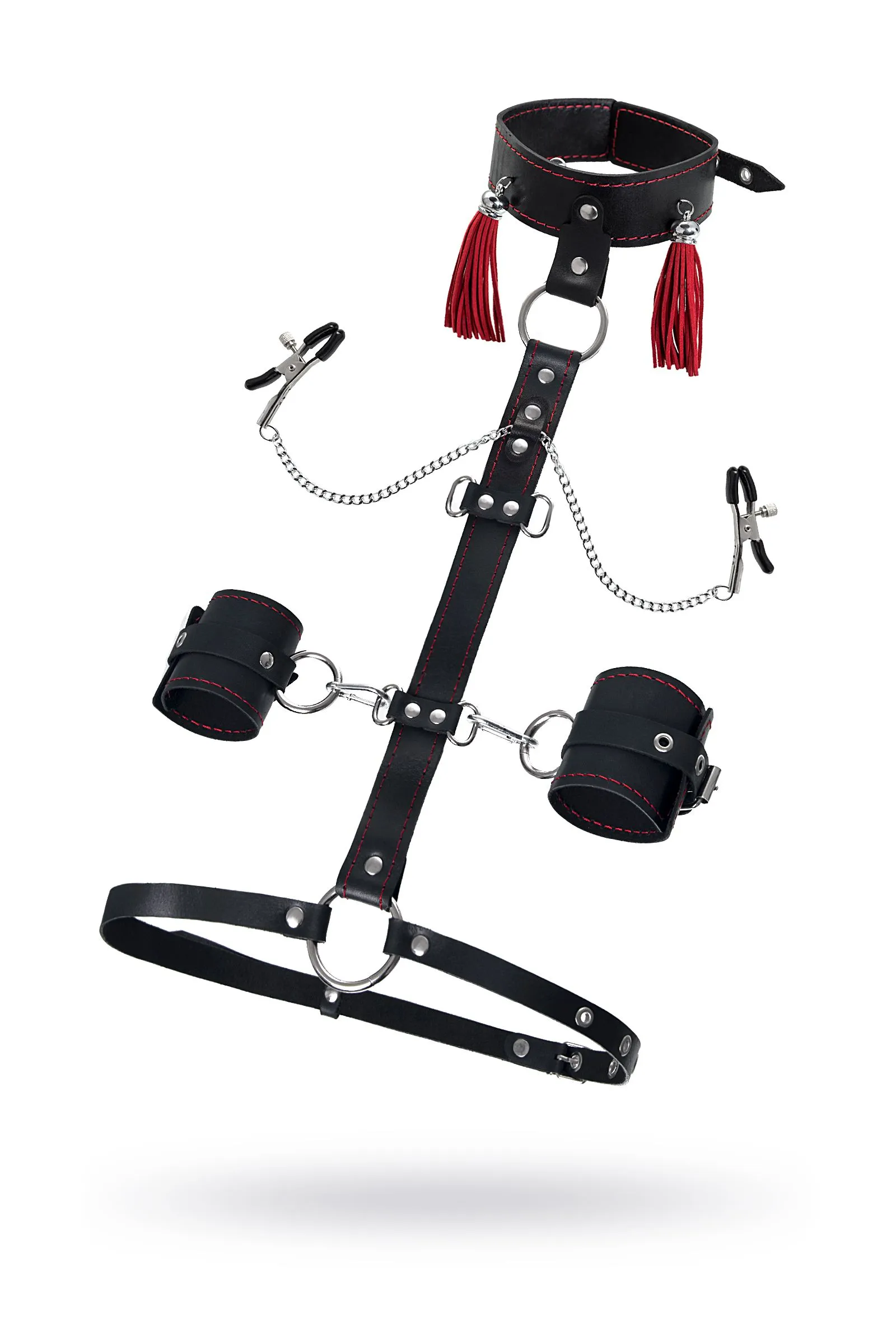 Готовы играть по-взрослому? С набором от Pecado BDSM воплощайте в жизнь смелые сексуальные фантазии, которые до этого момента были только мечтой. Хотите избавиться от искушения? Просто поддайтесь ему с Pecado BDSM! Бандажная система для фиксации рук и шеи с зажимами для сосков состоит из ошейника с кисточками, пары наручников для рук и зажимов для сосков, всё это в фирменной деревянной коробке Pecado BDSM. Кожаный ошейник соединяется с наручниками с помощью кольца и металлических карабинов. Фиксаторы для рук крепятся к кольцу металлическими цепочками с карабином. Кольцо на ошейнике позволит присоединить и другие аксессуары при помощи карабинов и экспериментировать с позициями и ощущениями. С этим комплектом расширить возможности и способы фиксации проще простого! Варианты и комбинации ограничения свободы партнера зависят от вашей фантазии и желаний. Частичное обездвиживание и невозможность двигать руками дают вам полную власть над партнером – взрослые игры для взрослых. Pecado BDSM – российский бренд, использующий высококачественные материалы и надежную, проверенную временем фурнитуру. Все изделия изготавливаются вручную из натуральной кожи, безопасный и экологичный материал не оставляет повреждений на запястьях. Натуральная кожа, металлические крепления и ремешки дают уверенность в надежной фиксации, устойчивости к механическим нагрузкам и долговременном использовании. Ширина наручников - 6,5 см, длина наручников - 20 см