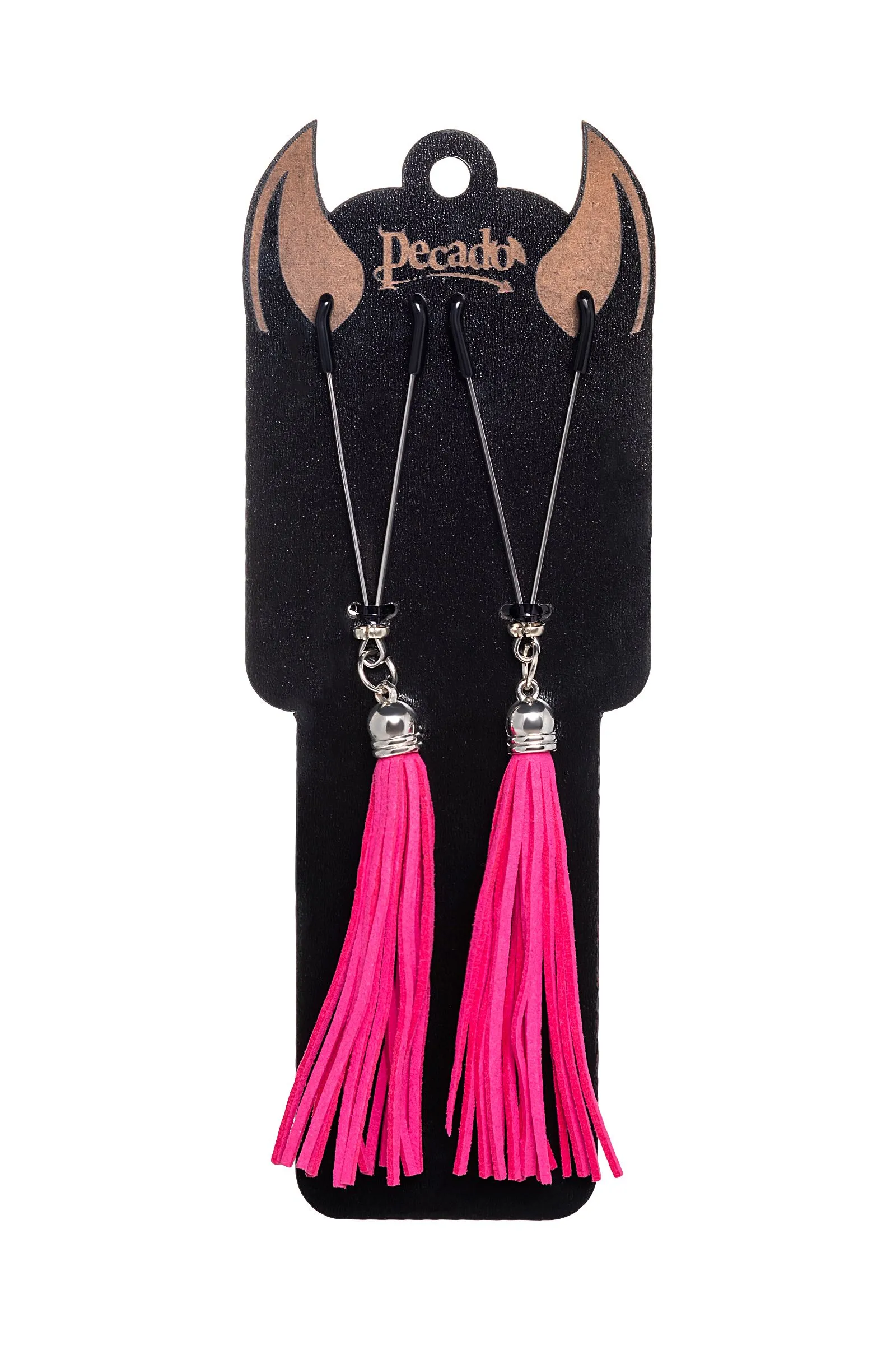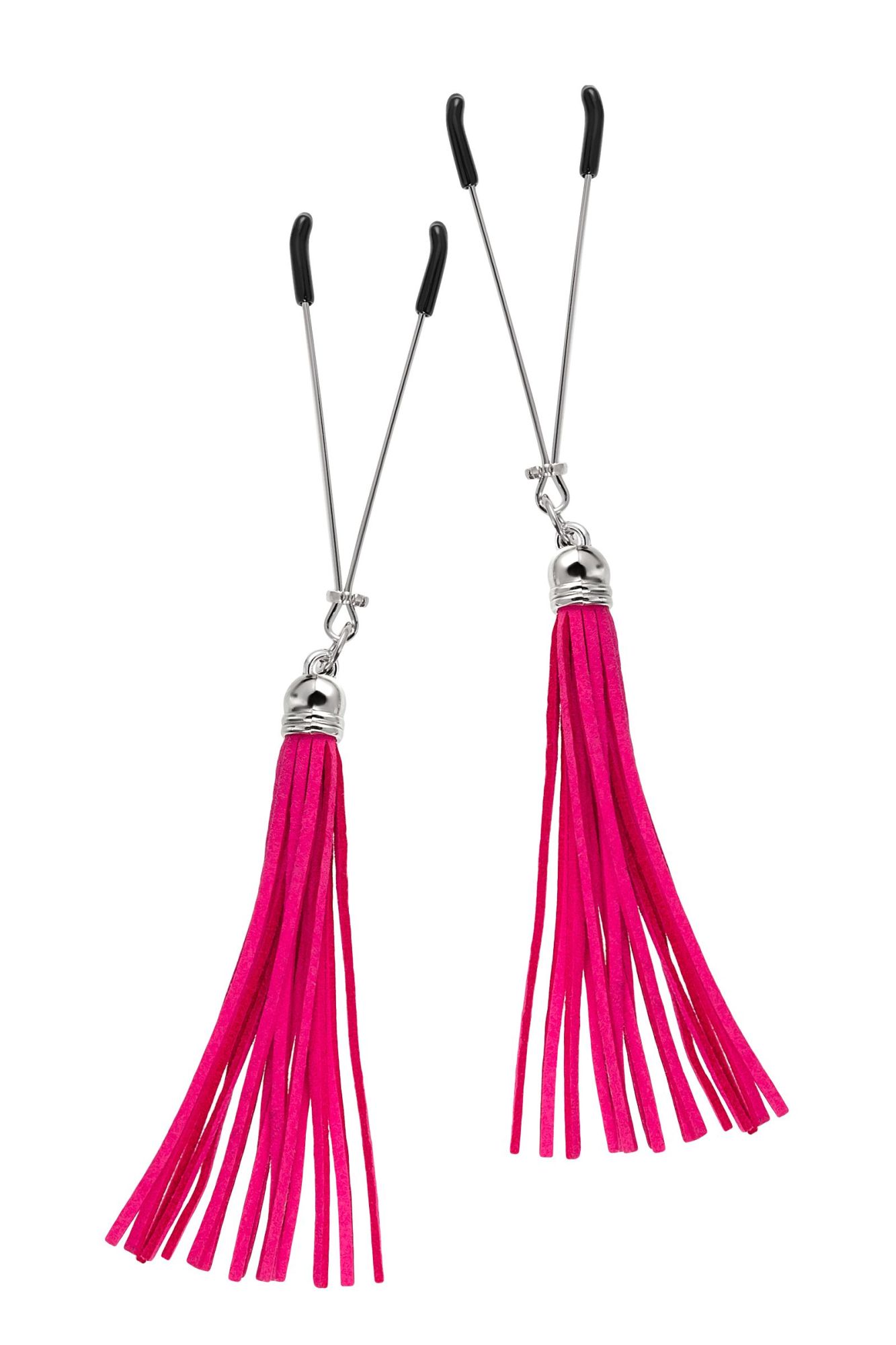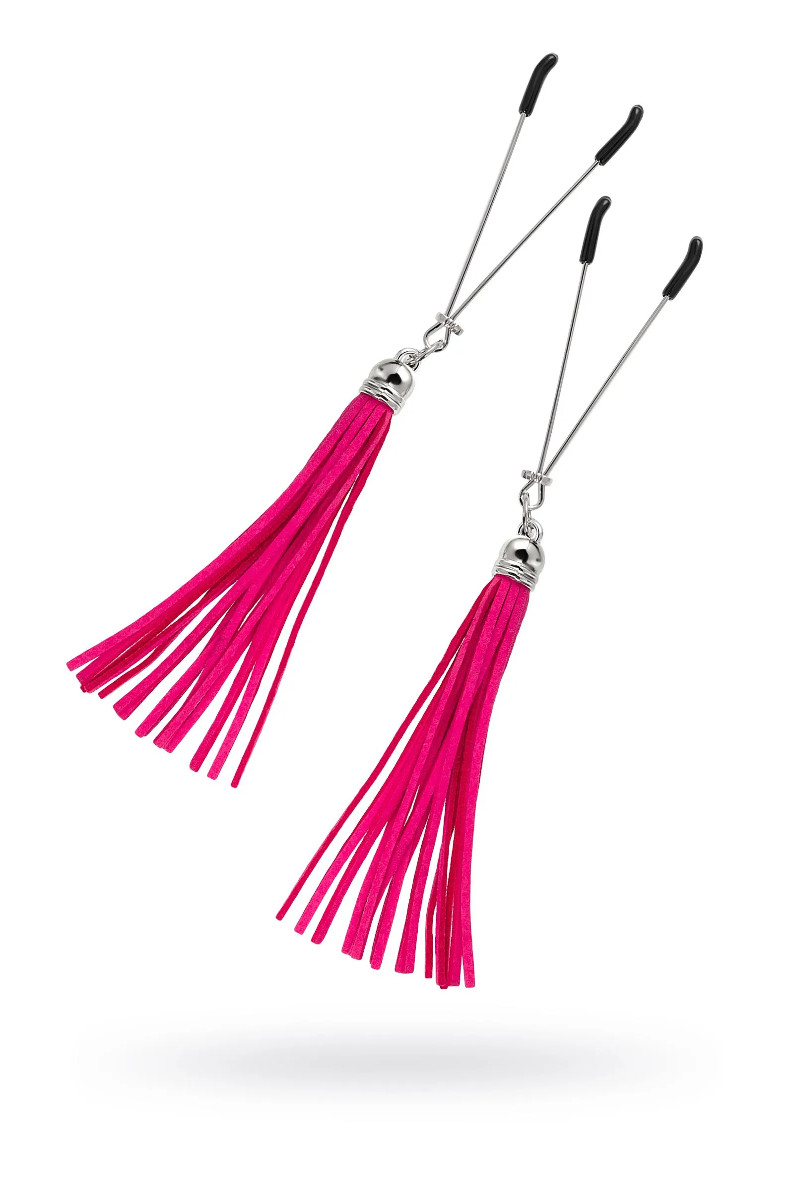 Зажимы на соски Pecado BDSM, «Вилки», с кисточками из замши, металл, фуксия