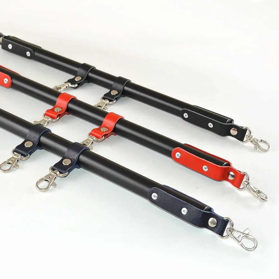 Распорка состоит из металлического основания и кожаных ремешков, удерживающих карабины. Карабины могут отличаться от изображения на фото. Цвет черный. Длина распорки 50 см.