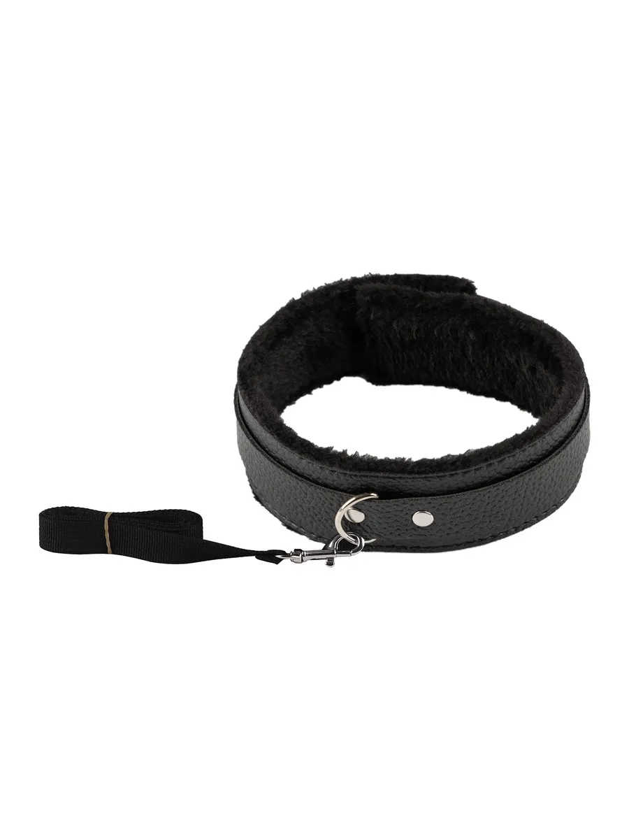 В набор входит: 2 пары кожанных наручников с мехом (для рук и ног), 1 ошейник кожанный с поводком, 1 кляп-шар, 1 маска для глаз, 1 плеть-флогер, 1 веревка для связывания. 7 предметов.