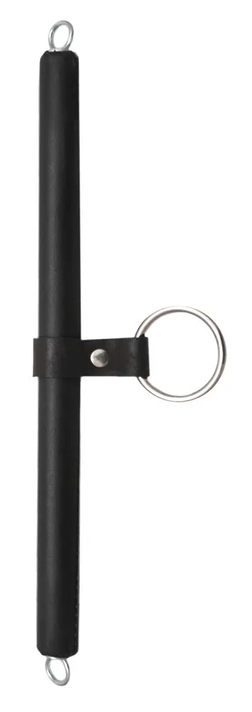 Распорка для фиксации маленького размера от бренда Pink Rabbit выполнена из дерева и обтянута натуральной кожей. У нее есть три металлических кольца, два из которых располагаются на обоих концах распорки и одно посередине. К кольцам можно пристегивать при помощи карабинов наручники, поножи, ошейник или любые другие аксессуары. Такая распорка дает множество возможностей для экспериментов, поэтому Вы сможете испробовать вместе со своим партнером различные позы и варианты фиксации.