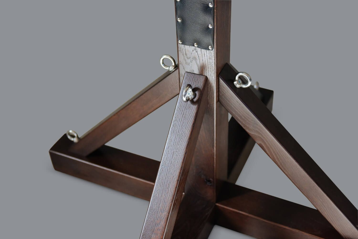 Столб высотой 210 см предназначен для пар, практикующих БДСМ игры и желающих полностью подчинить себе своего партнера. Столб выполнен из массива дуба и натуральной кожи черного цвета, надежно зафиксированной на столбе при помощи клепок. На изделии присутствует несколько специальных колец, расположенных по всей длине столба. Благодаря им будет возможна надежная фиксация партнера при помощи различных бондажных аксессуаров. Прикованный к столбу партнер испытает чувство полной беспомощности и будет готов безропотно принять любое наказание своего господина.