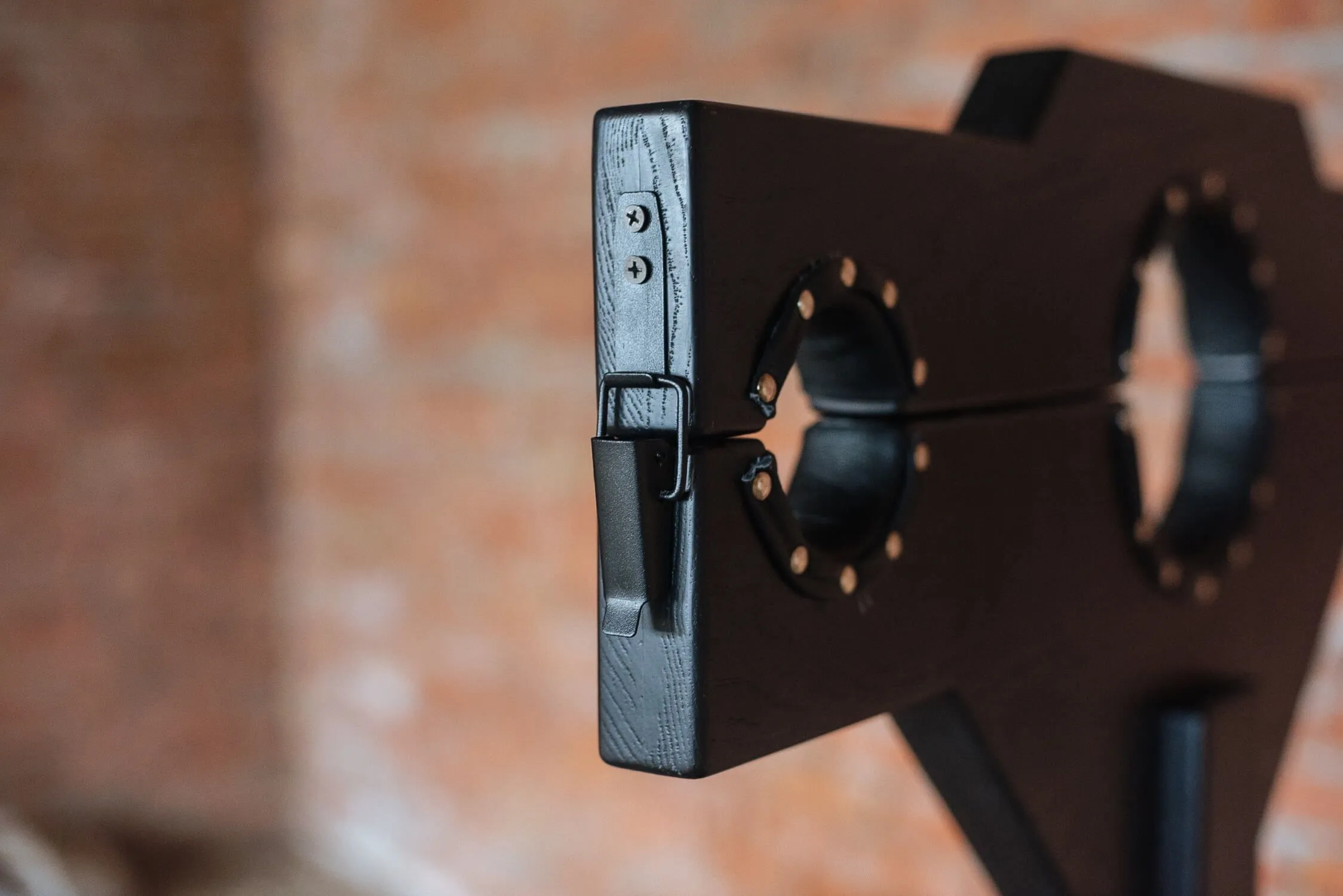 Большие кандалы предназначены для пар, практикующих БДСМ игры и желающих полностью пленить своего партнера. Изделие выполнено из массива дуба, а отверстия для головы и для рук отделаны натуральной кожей черного цвета. Благодаря продуманной конструкции кандалы можно будет немного опустить, чтобы положение подчиняющегося точно отвечало всем Вашим желаниям. Закованный в такие кандалы партнер испытает чувство абсолютной беспомощности и будет готов принять любое выбранное ему наказание.