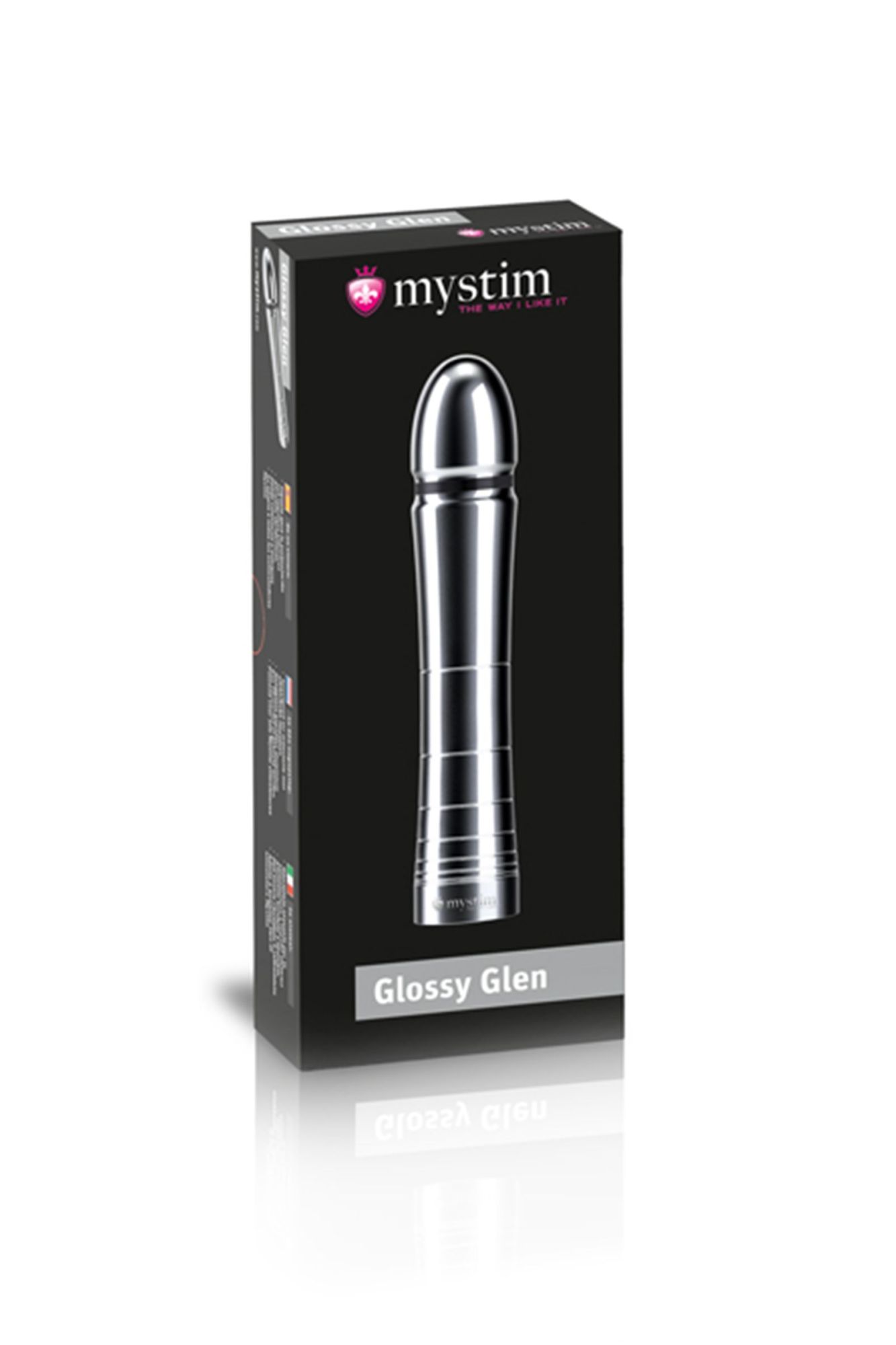—Фаллоимитатор Mystim Glossy Glen, электростимуляция, хирургическая сталь, серебряный, 14 см