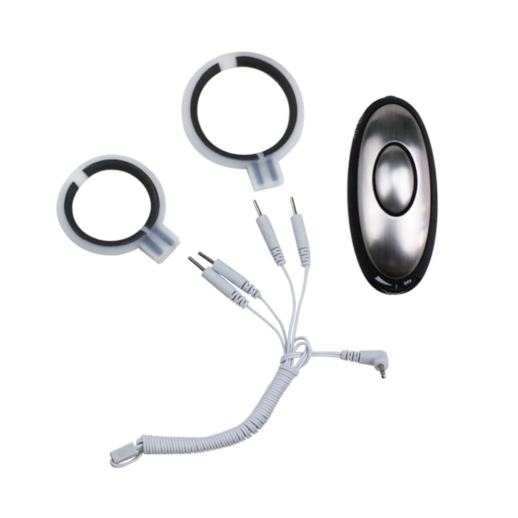 Электростимулятор на пенис, состоящий из двух колец, на которые передается ток, провода и пульта управления, на котором выставляется сила подаваемого тока и длина волны. Работает от батарейки-таблетки (входит в комплект). Внешний диаметр колец - 6,5 и 5,5 см. Внутренний диаметр колец: 5/4. Упаковка: картонная коробка с принтом. Цвет: черный/белый.