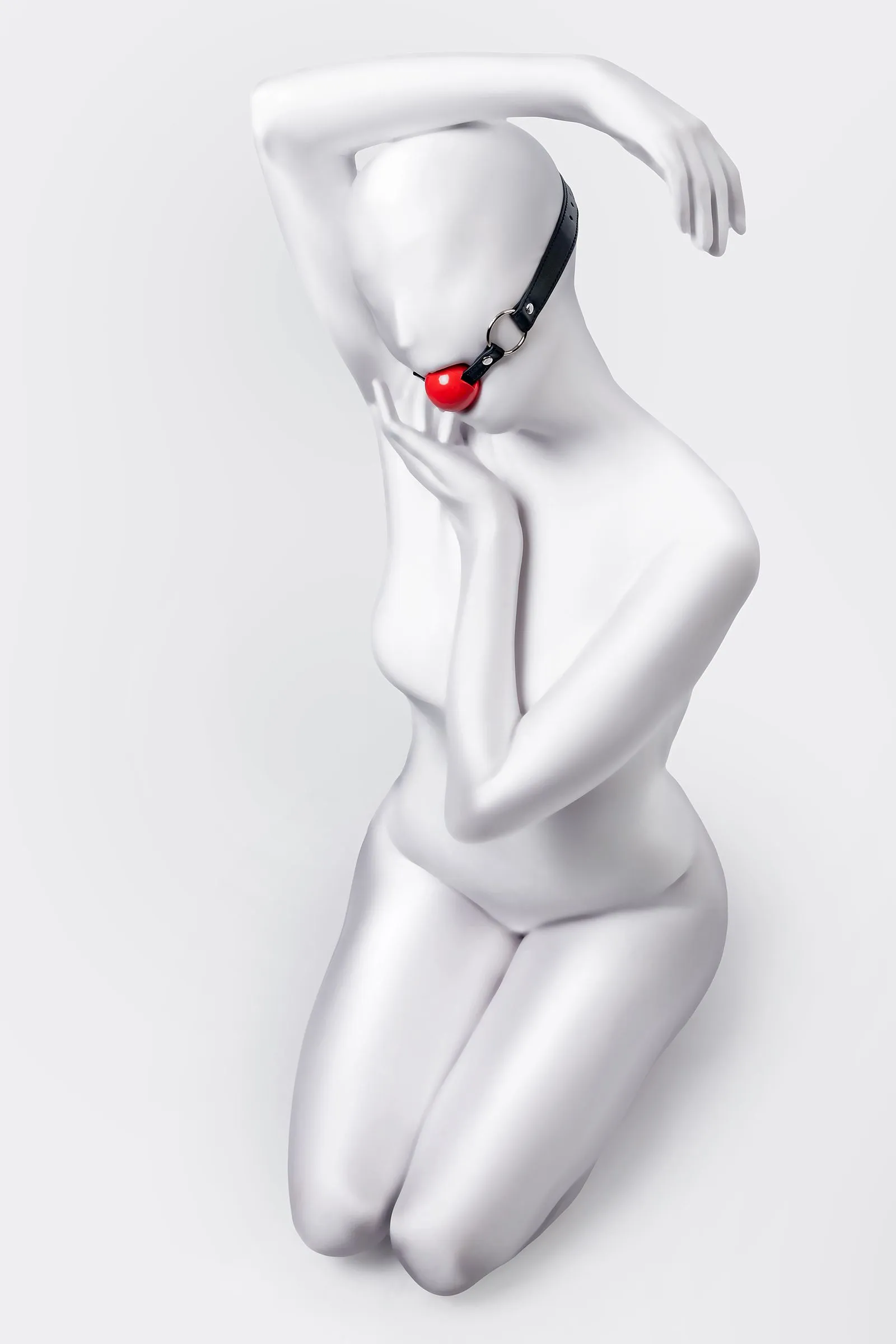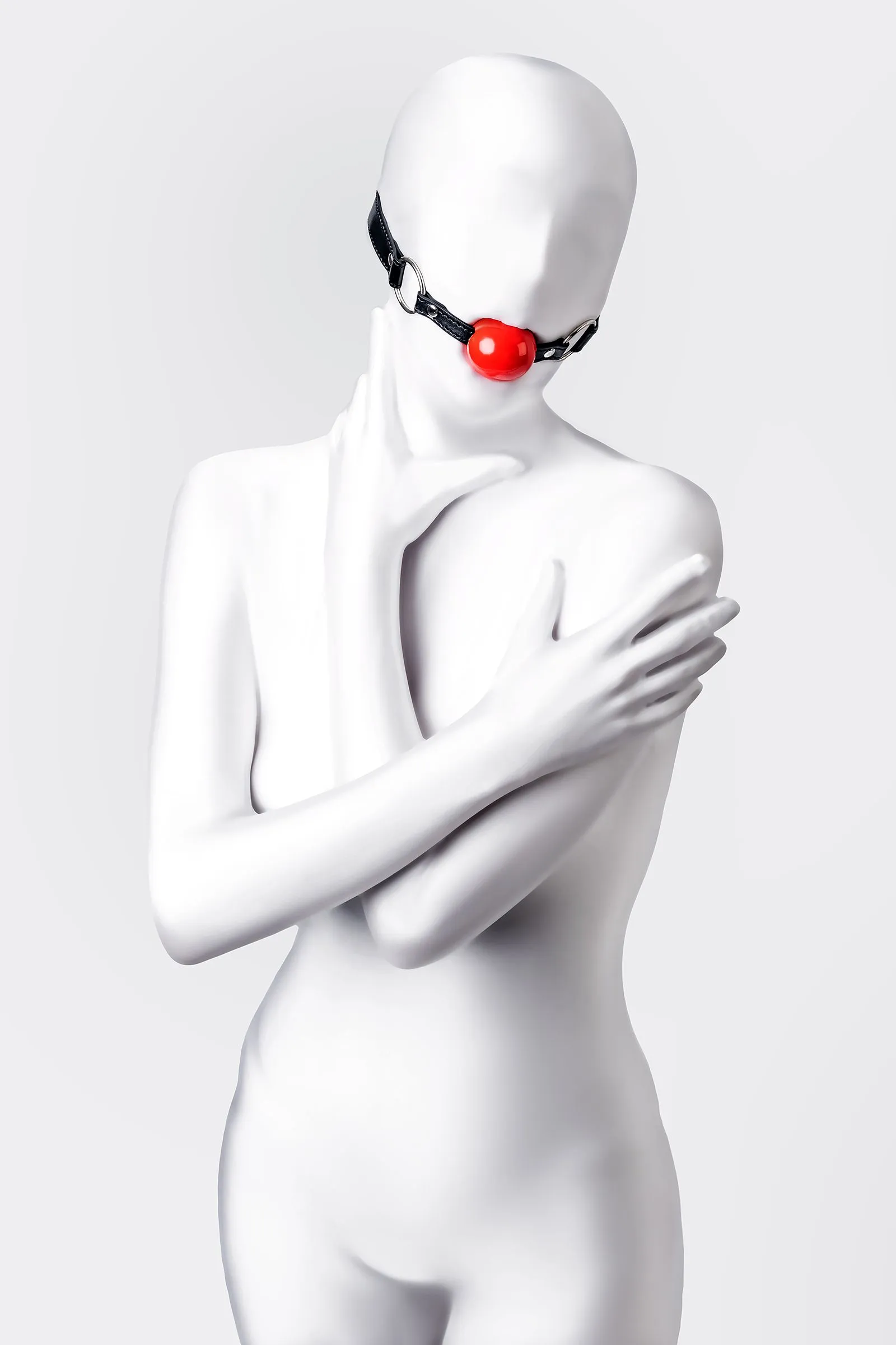 Искусство красноречивого взгляда – все что остается, ведь невозможно произнести ни слова в этом воздухонепроницаемом кляпе – только слушать и подчиняться. На первый взгляд кажется, что мягкость материала кляпа сделает игру в подчинение более комфортной, однако воздухонепроницаемость добавит напряжения в ваши отношения. Классическое сочетание черно-красного цвета и металлической фурнитуры делает образ сексуальным и загадочным. Ремешок фиксируется на голове металлической пряжкой и подходит для любого размера головы. Дополните страстный образ аксессуарами той же расцветки, чтобы погрузиться в атмосферу классической БДСМ-игры. Материал: PU кожа, TPR Цвет: черно-красный Общая длина: 64 см Диаметр кляпа: 4 см