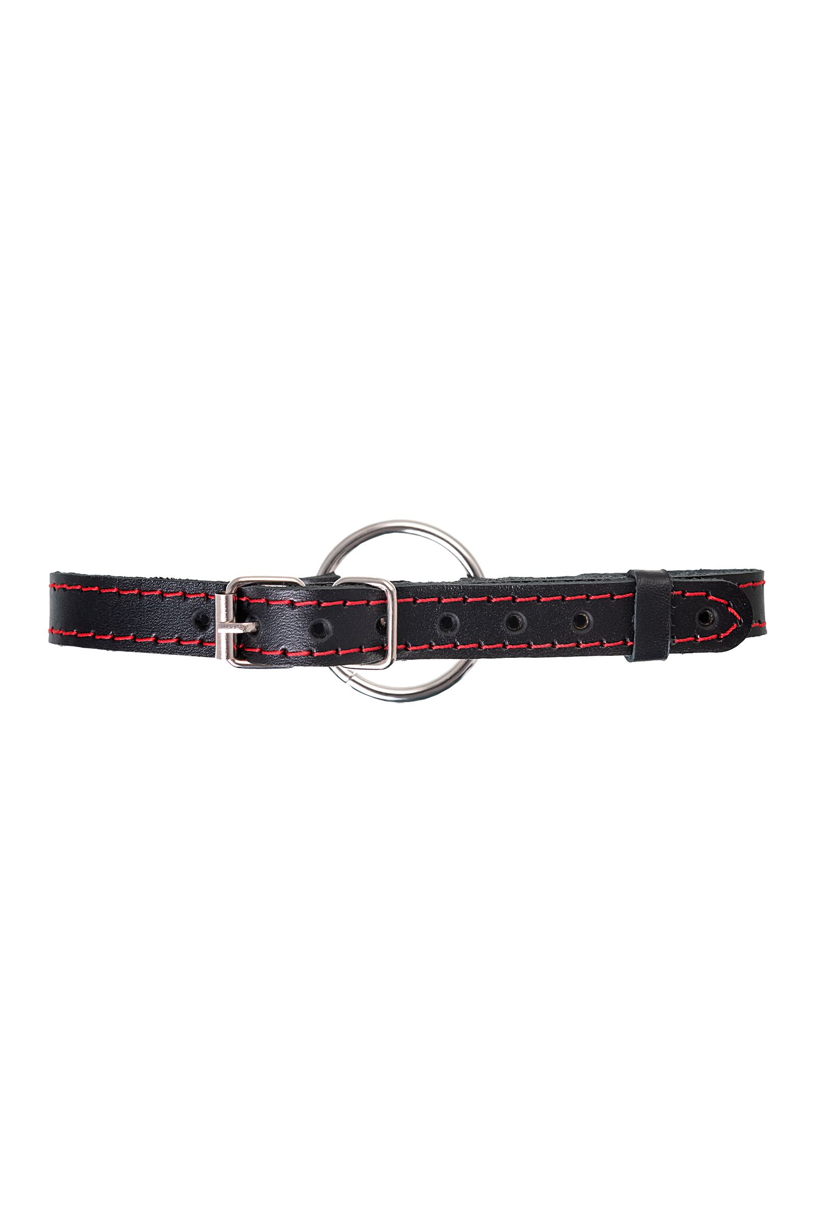 Кляп Pecado BDSM, «Кольцо 39 мм», с красной строчкой, натуральная кожа, черный