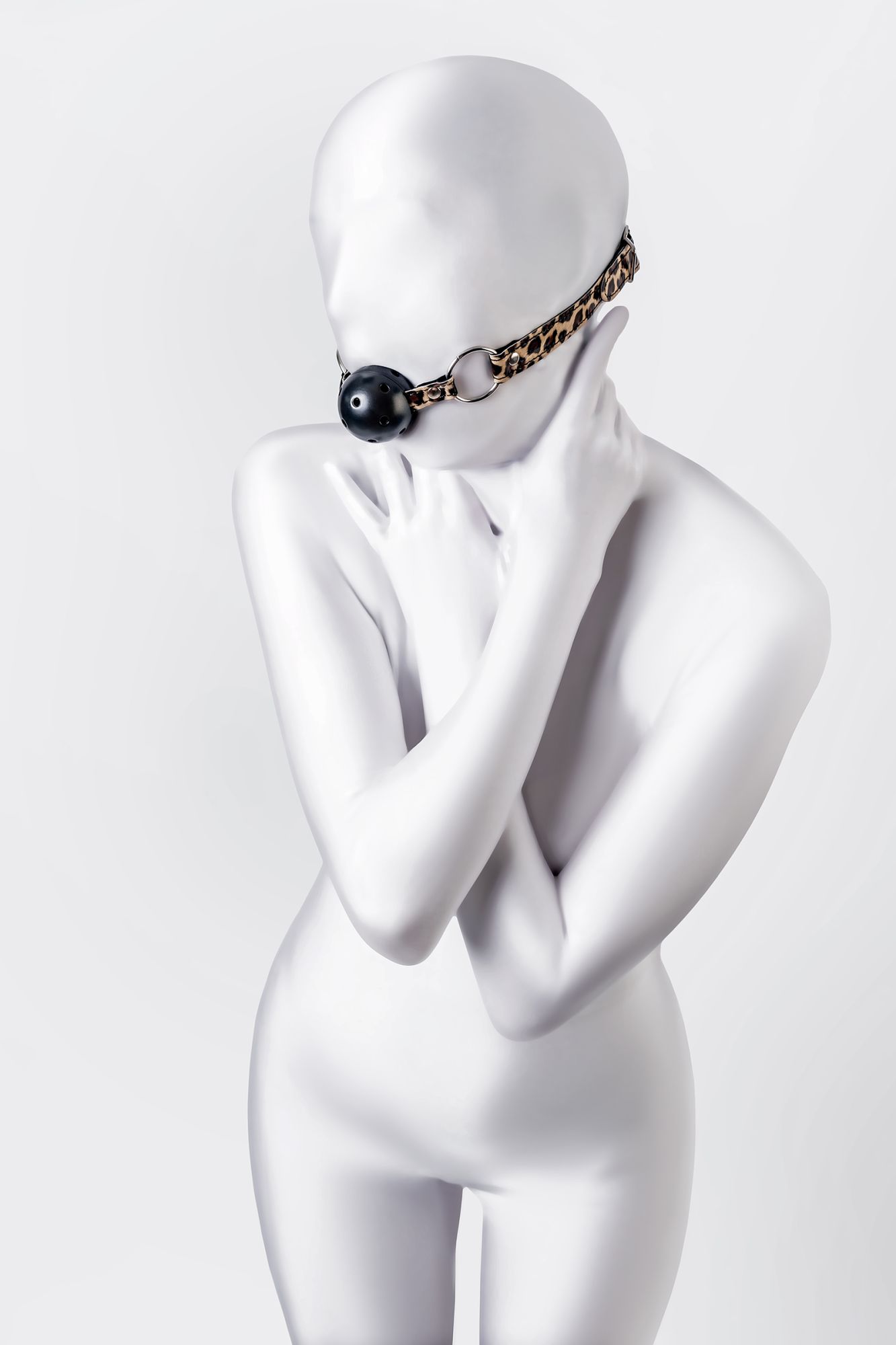 Искусство красноречивого взгляда – все что остается, ведь невозможно произнести ни слова в этом кляпе – только слушать и подчиняться. Можно скрежетать зубами по пластику, но вдруг Доминант рассердится и накажет еще сильнее? Специальные отверстия для воздуха делают ношение кляпа безопасным и комфортным. Удачное сочетание леопардовой расцветки и металлической фурнитуры делает образ сексуальным и загадочным, добавляя в образ элемент хищника. Ремешок фиксируется на голове металлической пряжкой и подходит для любого размера головы. Игра в послушную зверюшку или непокорного хищника…. Уже представили? Дополните образ аксессуарами той же расцветки и наслаждайтесь обществом друг друга. Материал: PU кожа, пластик Цвет: леопардовый, черный Общая длина: 64 см Диаметр кляпа: 4,5 см