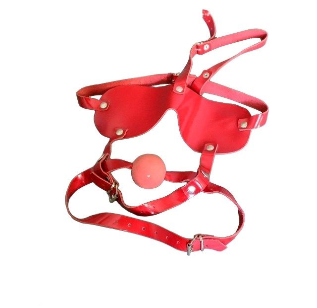 Маска выполнена из натуральной кожи красного цвета и оснащена кляпом и шорами. Диаметр кляпа - 5,4 см. Размер можно регулировать с помощью ремней.