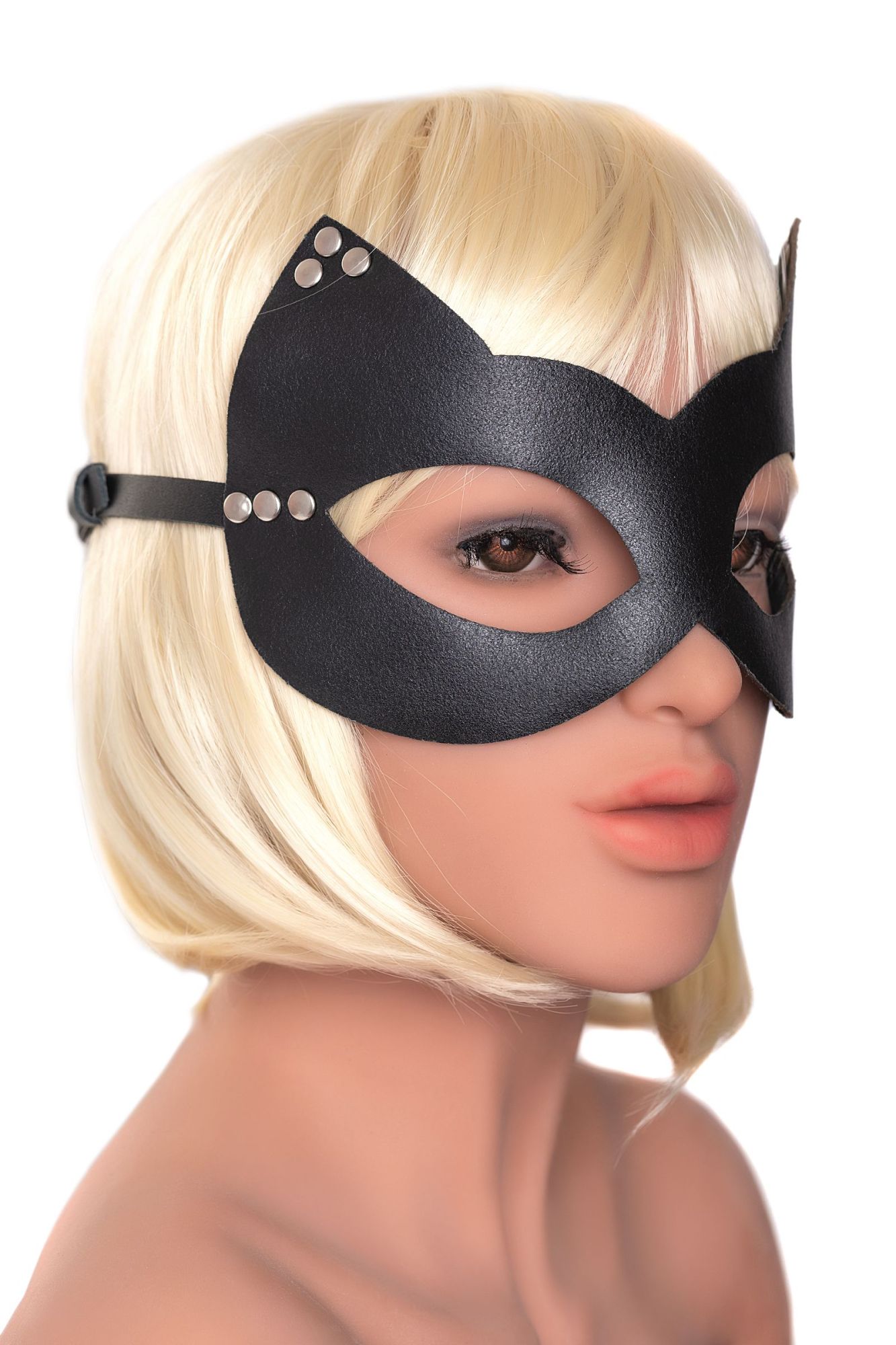 —Маска Штучки-дрючки «Кошка» с заклепками, кожа, черная