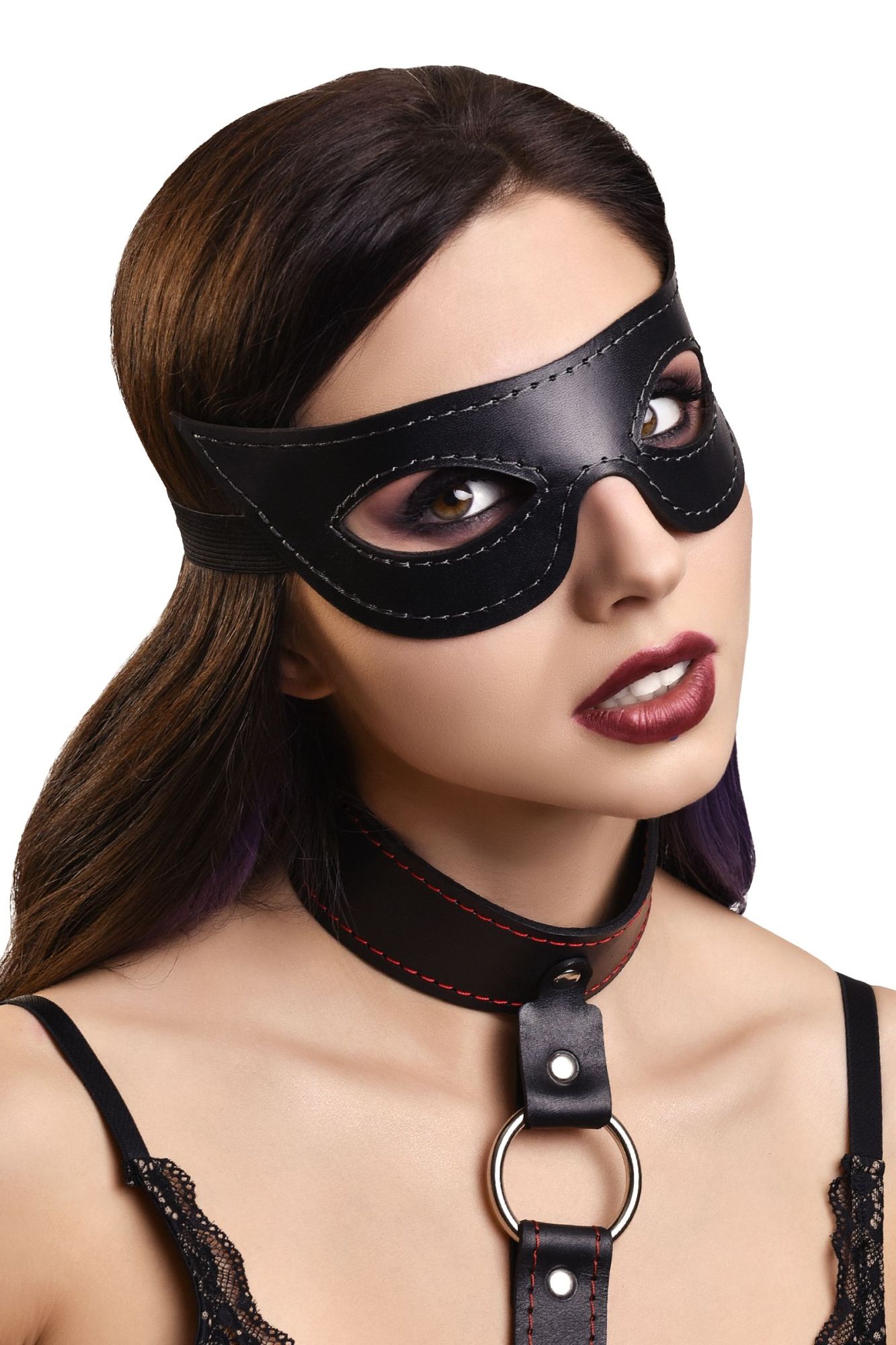 —Маска Pecado BDSM, открытая острая, натуральная кожа, черная