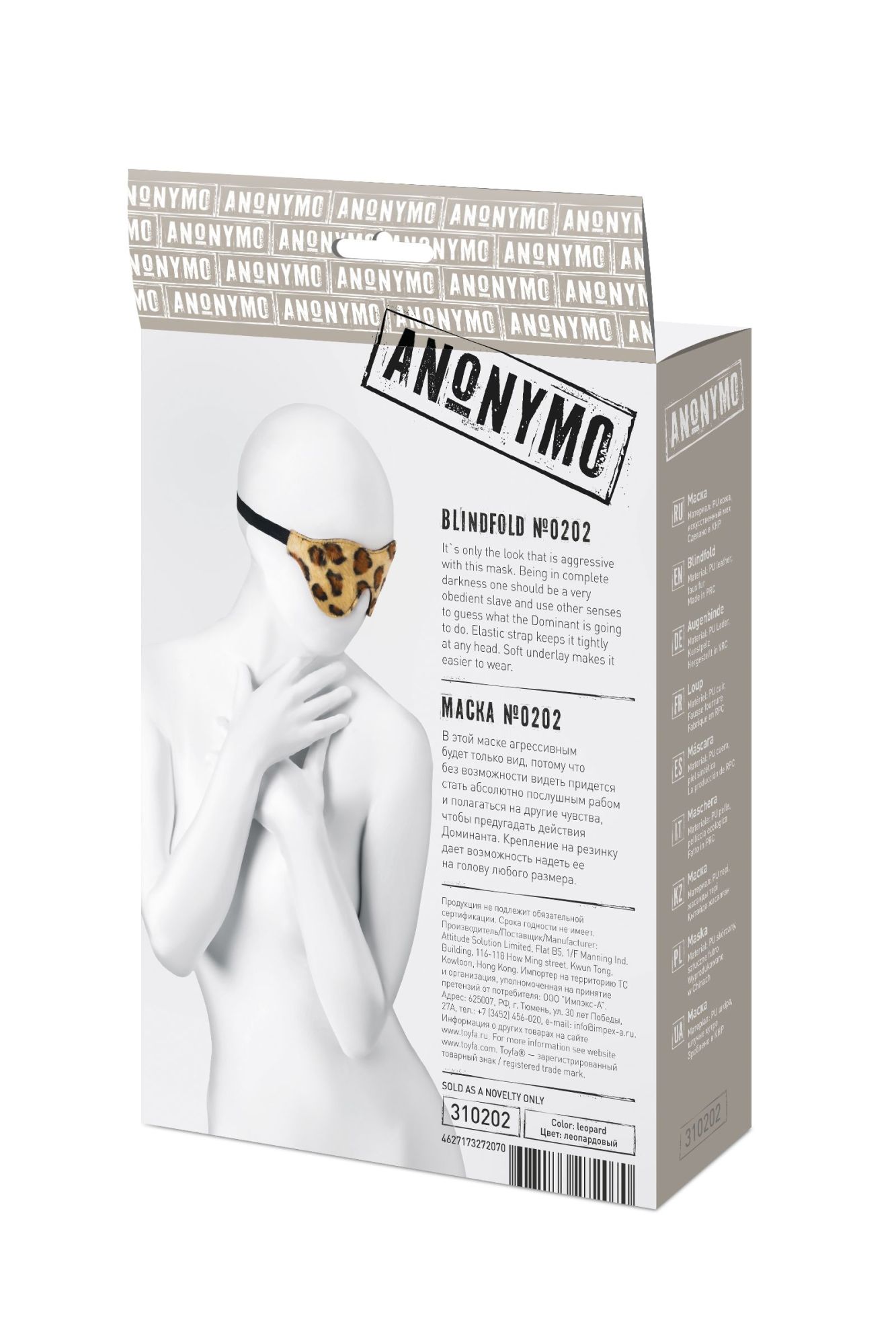 —Маска Anonymo #0202, PU кожа, принт, 26 см
