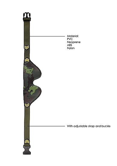 Army Theme - выполненная в необычном стиле маска на глаза закрытого типа для эротических ролевых игр и практик БДСМ. Благодаря своей эргономичной форме, она плотно покрывает область поверх глаз, полностью блокируя поступление света. Материал маски мягкий и приятный на ощупь. Эластичный ремешок надежно удерживает аксессуар на месте, а также обеспечивает универсальный размер.