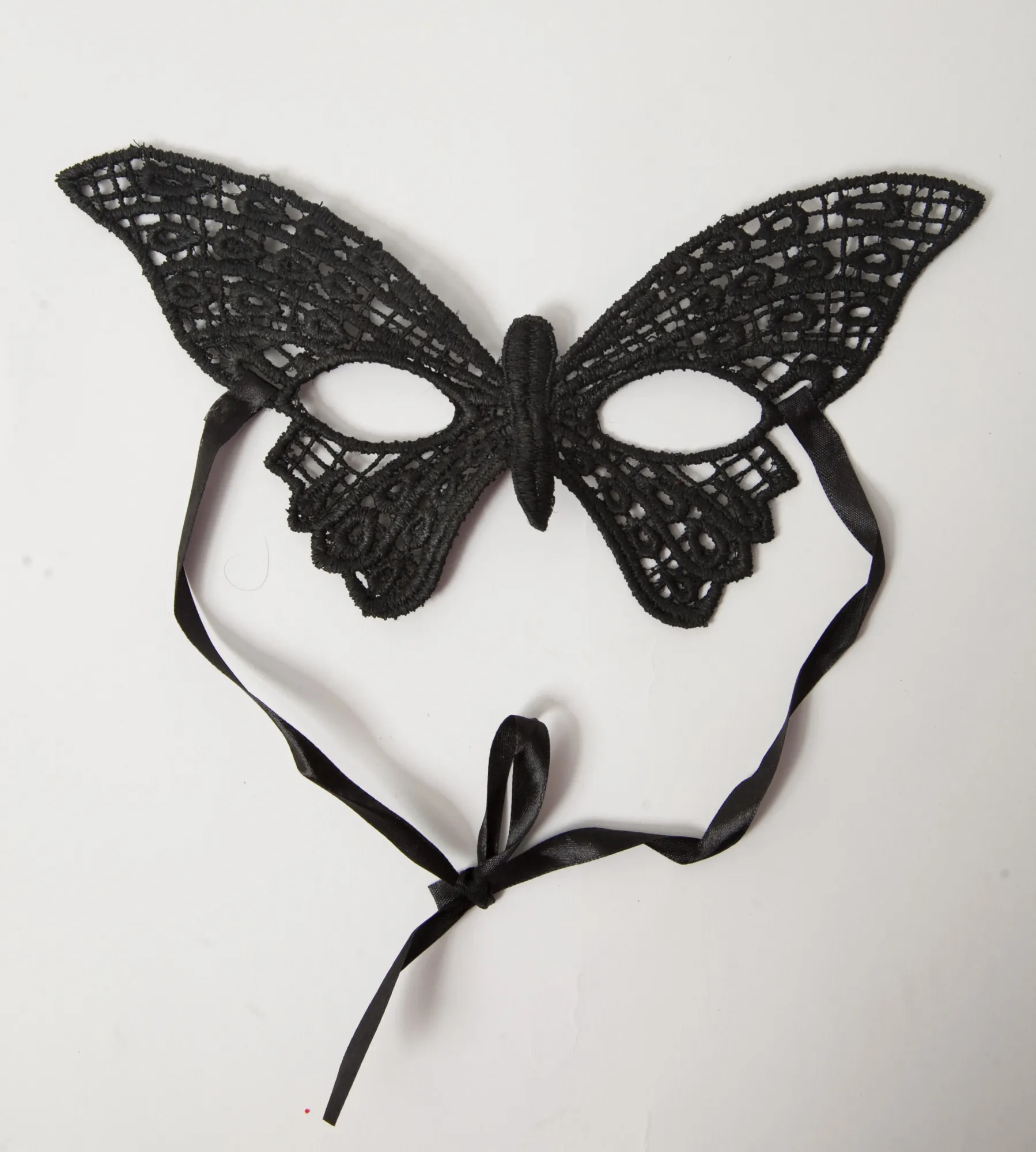Кружевная маска Бабочка в венецианском стиле. Завязывается на атласные ленты. Размеры маски: длина- 24 см, ширина - 13 см. Упаковка- картонный конверт.