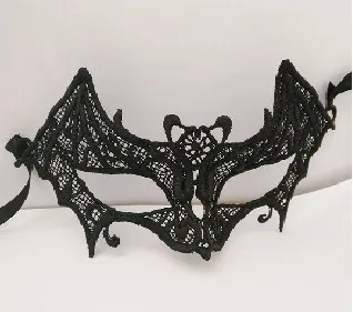 Кружевная маска в венецианском стиле в форме летучей мышки. Завязывается на атласные ленты. Размеры маски: длина- 21 см, ширина - 9 см. Упаковка- пакет.