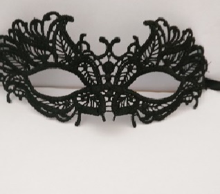 Кружевная маска в венецианском стиле с многочисленными узорами. Завязывается на атласные ленты. Размеры маски: длина- 22,5 см, ширина - 8 см. Упаковка- картонный конверт. Страна изготовления- Китай.