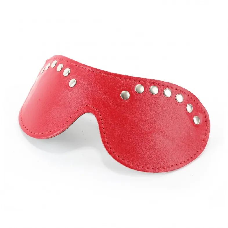 Красная маска из кожзама, декорированная заклепками. Крепится к голове при помощи удобной резинки. Длина маски - 19,5 см., ширина - 7 см.
