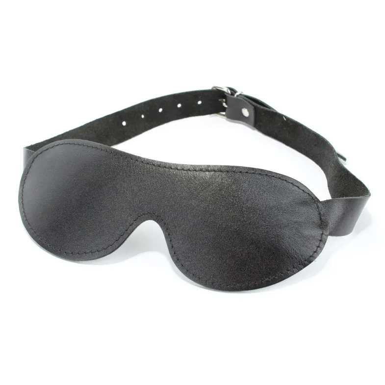 Маска из натуральной кожи черного цвета. Крепится к голове при помощи удобных ремней с пятью делениями. Длина маски - 20 см., ширина - 7 см. Упаковка: картонная подложка.