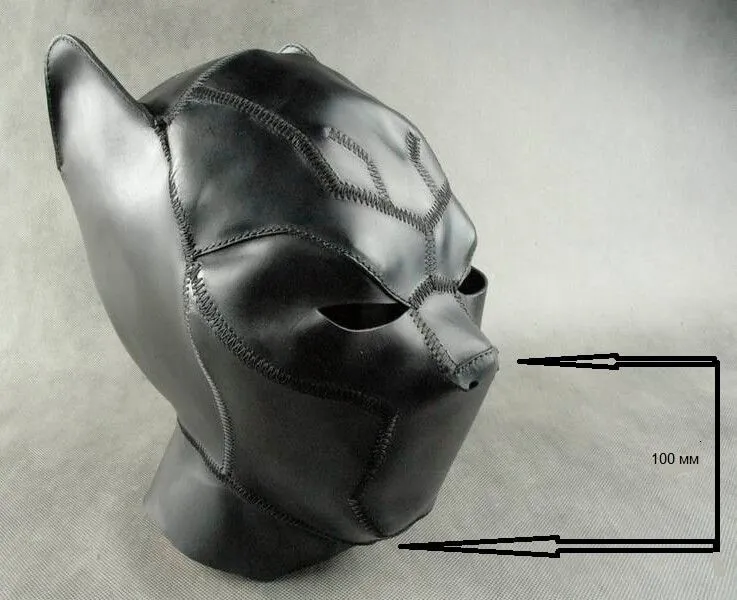 Мужской шлем "Черная пантера" от бренда Beastly сделан из натуральной кожи черного цвета и оснащен длинной молнией на затылке. Он неподшитый и плотно садится на голову. У шлема есть прорези для глаз и только два небольших отверстия под носом, поэтому дыхание будет частично ограничено.