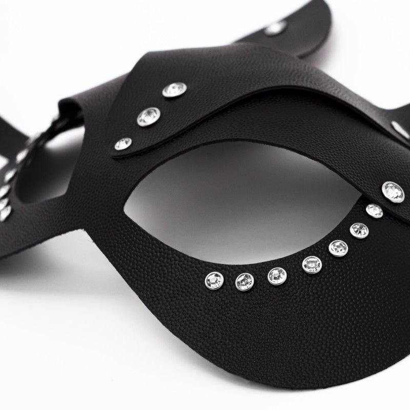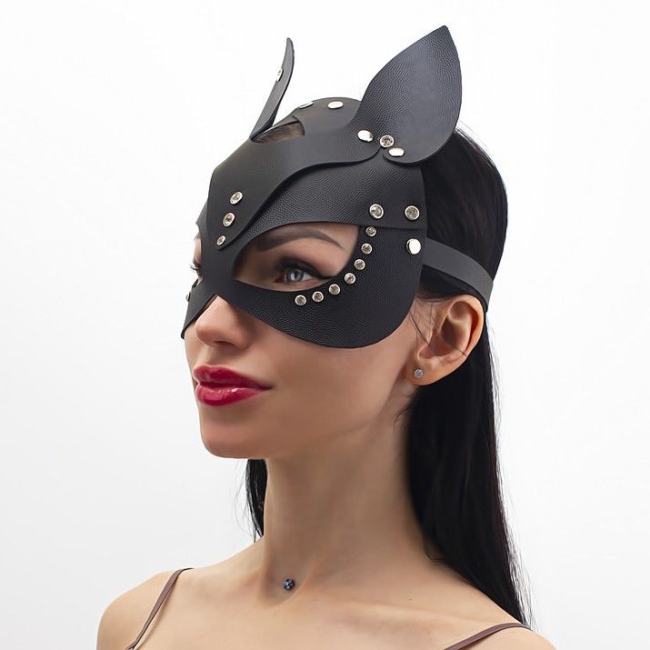 Изящная маска кошки из натуральной кожи черного цвета, украшена стразами. Надевая маску, мы можем дать свободу некоторым своим импульсам, можем их открыть партнёру. В этой маске вы почувствуете себя искусной соблазнительницей, грациозной сексуальной кошечкой и ваш романтический вечер плавно перейдёт в жаркую ночь. Кроме этого, маску можно использовать как карнавальную на различных мероприятиях. При помощи ремешка размер можно регулировать для комфортного ношения.