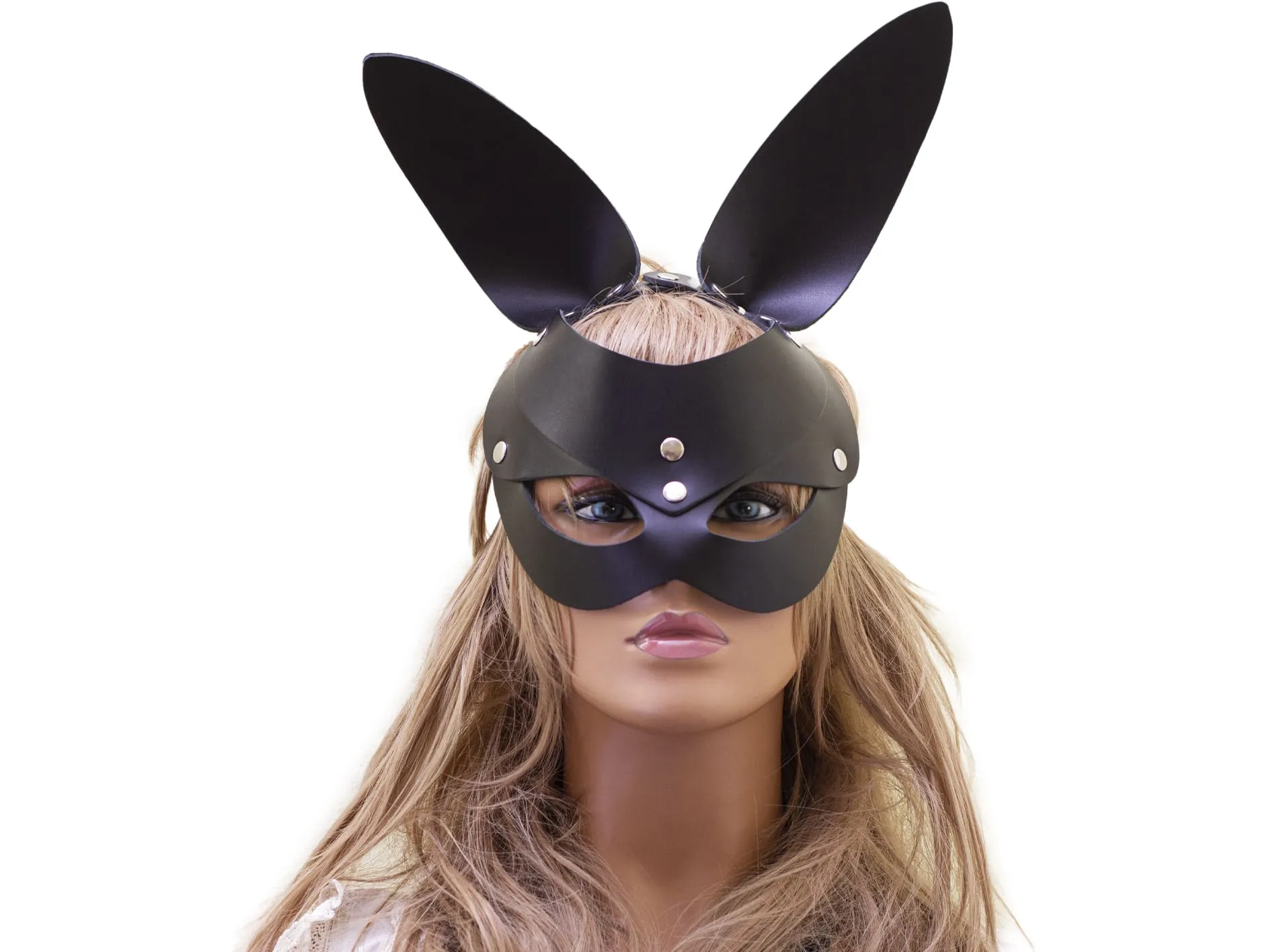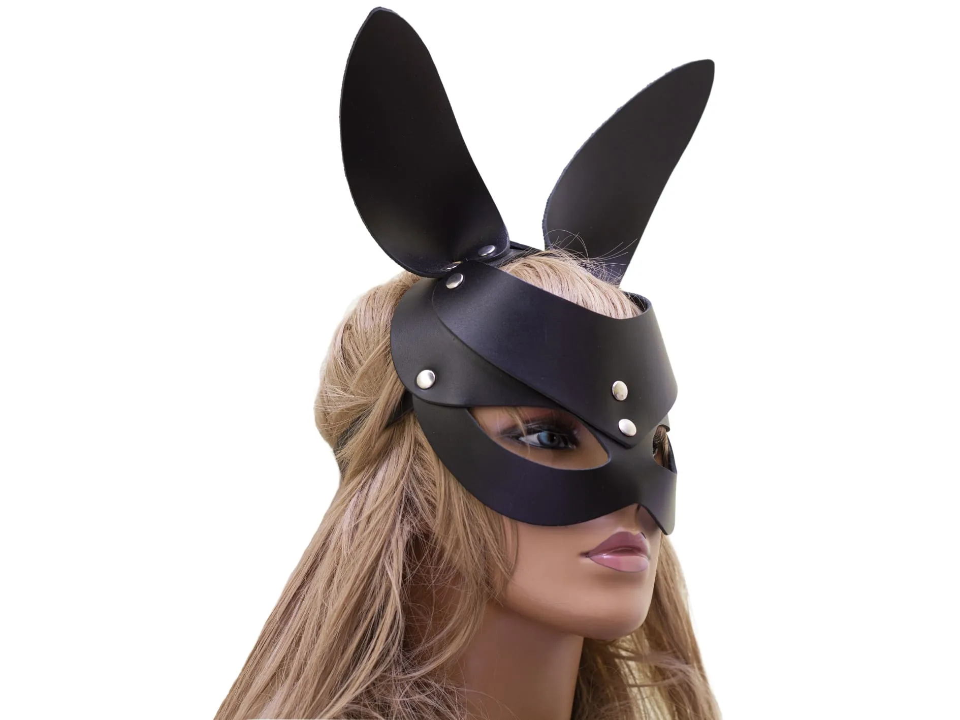 Классическая маска зайца с длинными ушками сделана из натуральной кожи черного цвета. С ней Вы сможете перевоплотиться в сексуальную и дерзкую зайку, которая способна в момент очаровать своего мужчину и заставить его сгорать от страсти. Маска станет отличным дополнением как к карнавальному, так и к ролевому эротическому костюму. Она застегивается при помощи ремешка, размер можно регулировать.