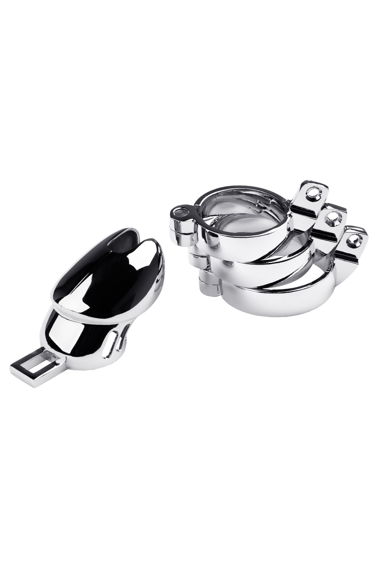 Пояс верности мужской, TOYFA Metal, серебристый. В комплекте 3 кольца разных диаметров: 4/4,5/5см. В комплекте также идет замок с тремя ключами.