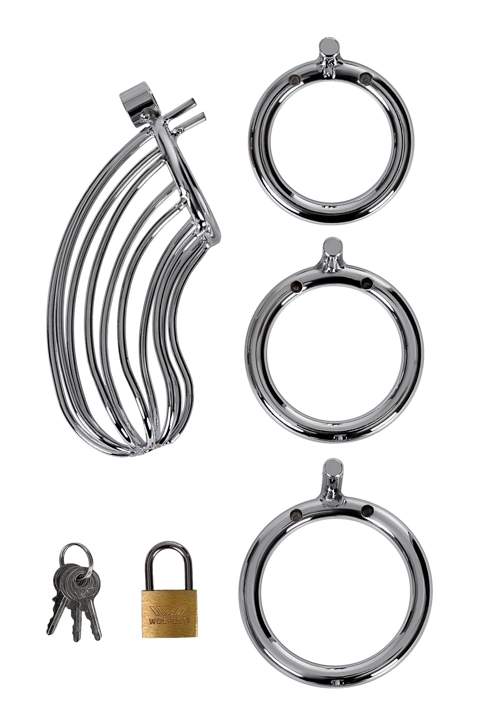 Металлический пояс верности имеет анатомическую форму и снабжен многочисленными отверстиями для гигиены. В комплекте 3 кольца для мошонки разных диаметров. Данный аксессуар отлично подойдет для эротических и ролевых игр. В комплекте также идет замок с тремя ключами.