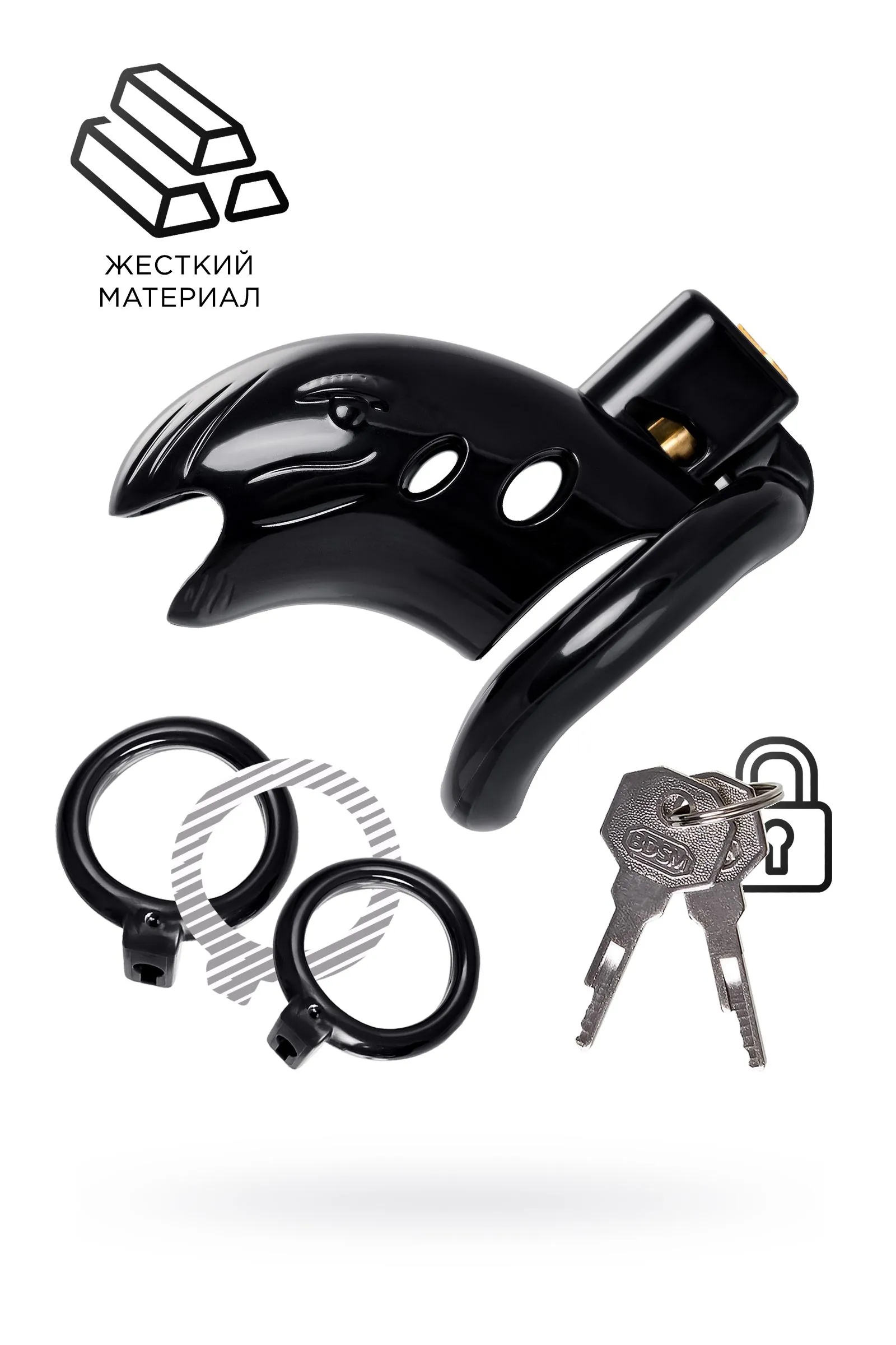 Идеальный инструмент для контроля и доминирования — пояс верности для него. Жесткая изоляция пениса гарантирована в этом устройстве. Никакой несанкционированной эрекции, пока половой член заперт на замок в этой пластиковой клетке, а ключ спрятан в потайном месте. Отверстие на конце делает возможным мочеиспускание, поэтому пояс подходит для длительного ношения. В комплекте три пластиковых кольца разного диаметра, подходящих для разных размеров пенисов и вариантов ношения. С этим девайсом вы всегда будете уверены, что сексуальная жизнь партнера подчиняется только вашим капризам и желаниям. Материал: ABS Цвет: черный