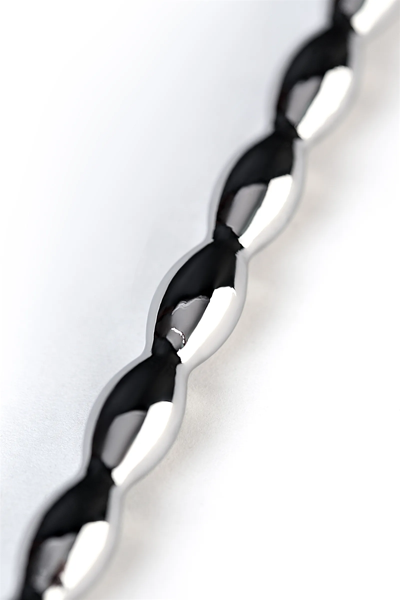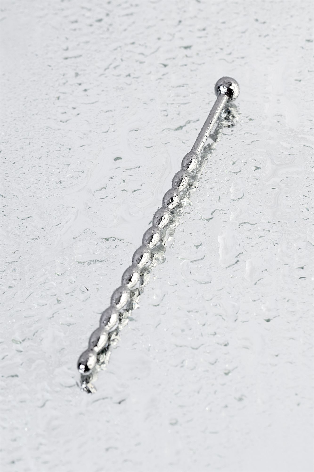 Уретральный плаг в форме косички. Небольшие звенья плавно меняют диаметр. Прекрасный вариант для исследования чувствительности своего организма: шарик на конце и удлиненное расстояние до фигурной части добавляют удобства при стимуляции уретры.