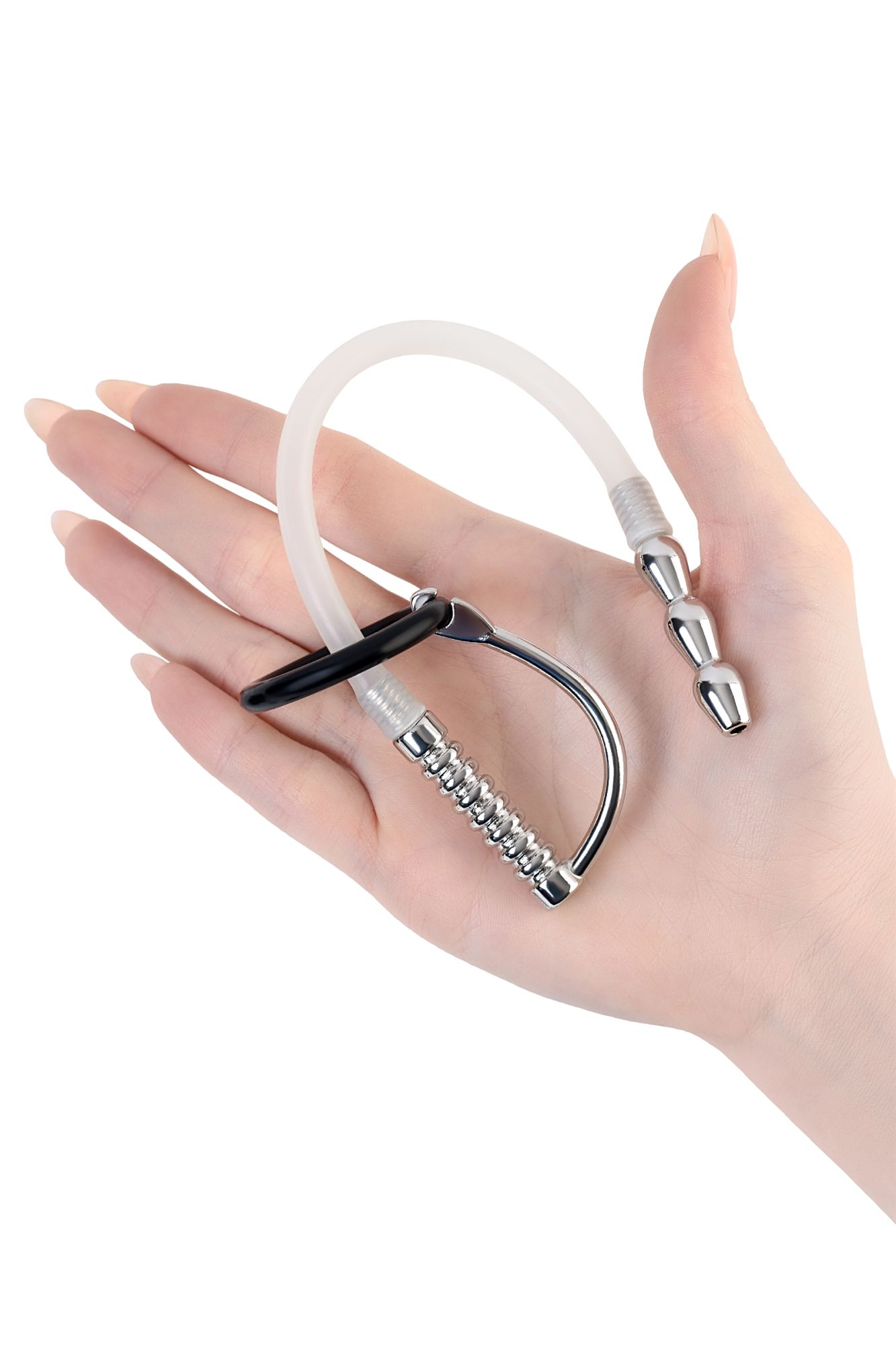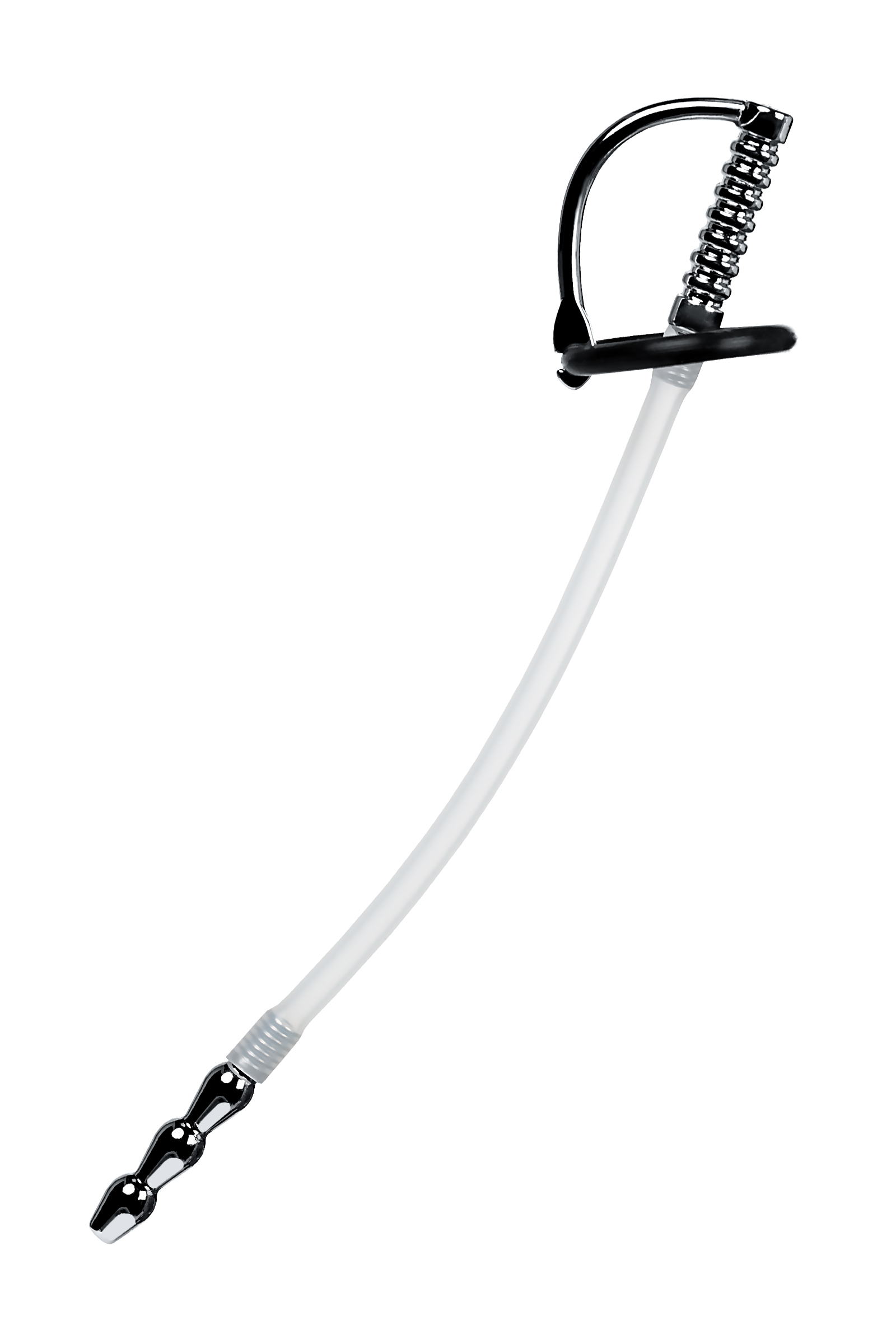 Уретральный катетер с силиконовой трубкой. Длина силиконовой части 150 мм, начинающие могут уменьшить ее самостоятельно. Мягкое кольцо для фиксации на головке. В комплект входят 2 кольца диаметром 25 мм и 30 мм.