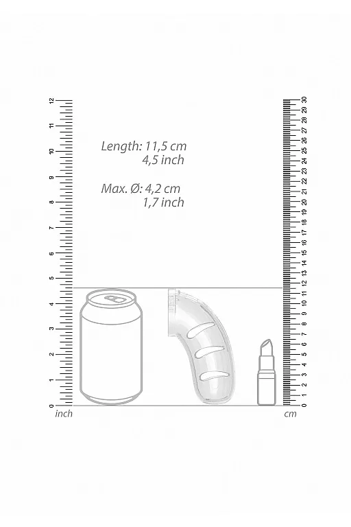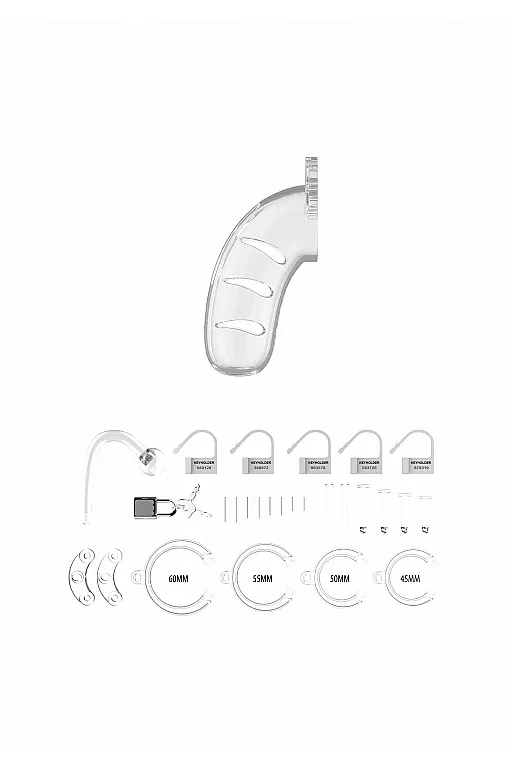 Благодаря легкому, прочному и гипоаллергенному материалу пояс идеально подходит для долговременного ношения. Изделие состоит из нескольких разборных частей: клетки, кольца и штифтов, которые идеально сочетаются друг с другом. В комплекте к поясу идет 4 кольца разных диаметров для разных размеров и предпочтений. Просто выберете подходящий размер кольца, соедините его тремя штифтами, оденьте на средний штифт специальную втулку и соедините с клеткой. На центральном штифте есть специальное отверстие для замка. Выберете один из замков и зафиксируйте пояс. Фиксация тонкой гибкой лентой высокой прочности гарантирует, что металлоискатели на пояс не среагируют.